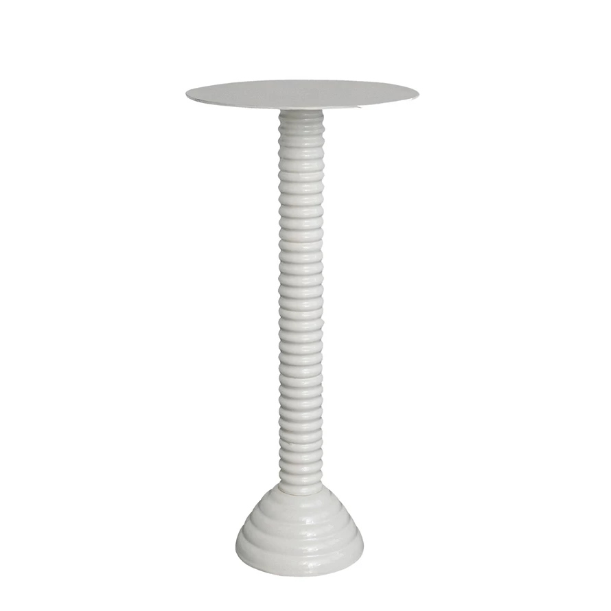 Enameled Metal Ribbed Bar Height Table, Cream Color