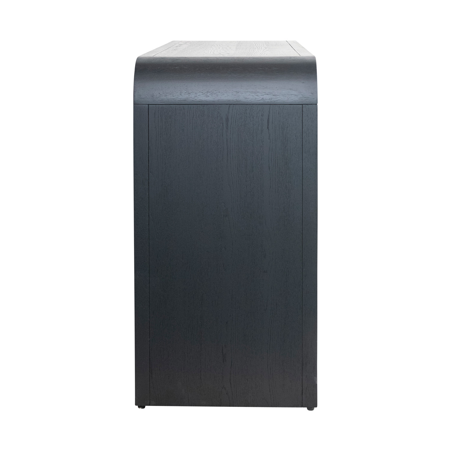 Catalog Name: 60"W x 19"D x 36"H Rubberwood & Oak Wood Veneer Console Table w/ 3 Shelves & 6 Drawers, Black, Truck Ship