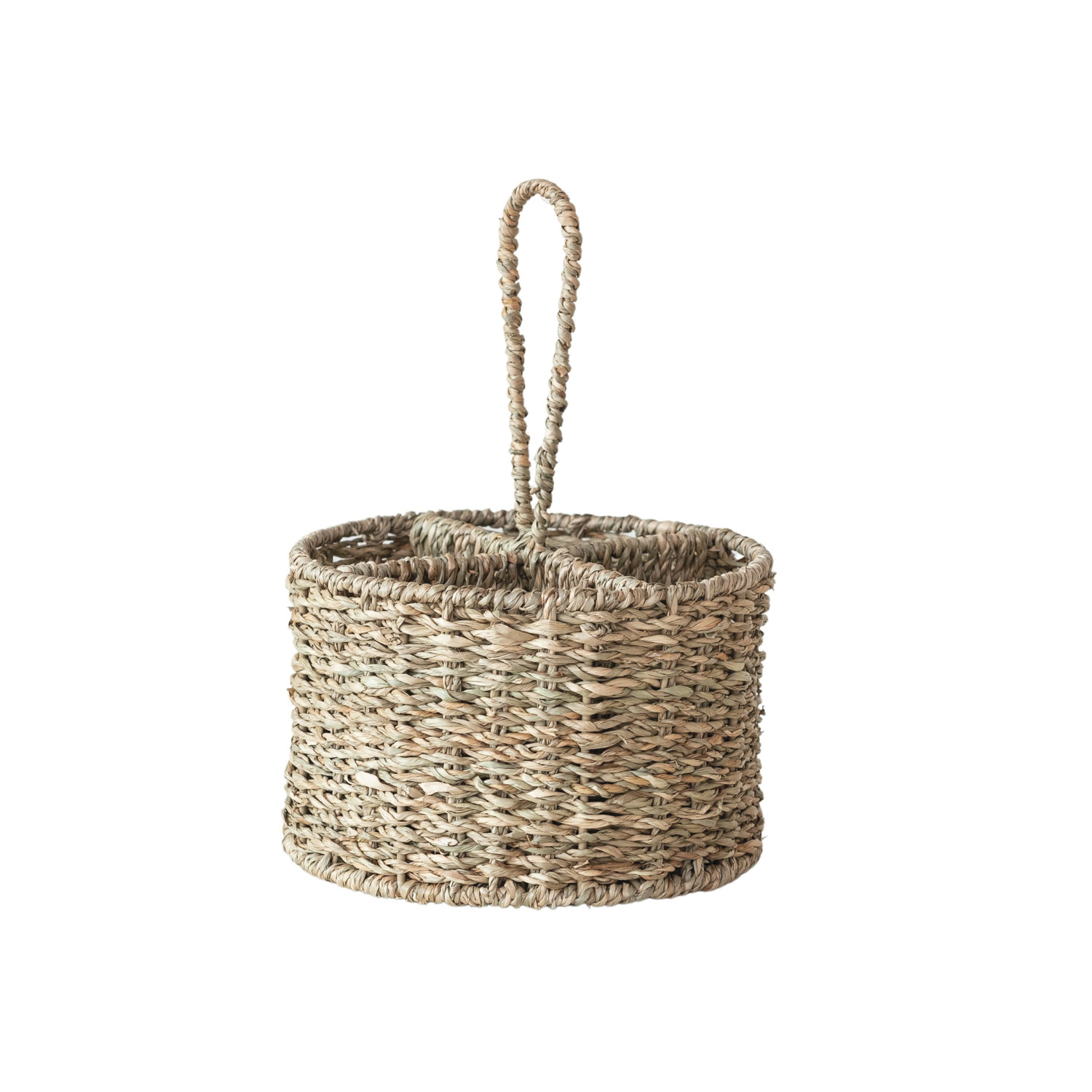 Catalog Name: 7-3/4" Round x 11-3/4"H Hand-Woven Seagrass Caddy w/ 4 Sections, Natural