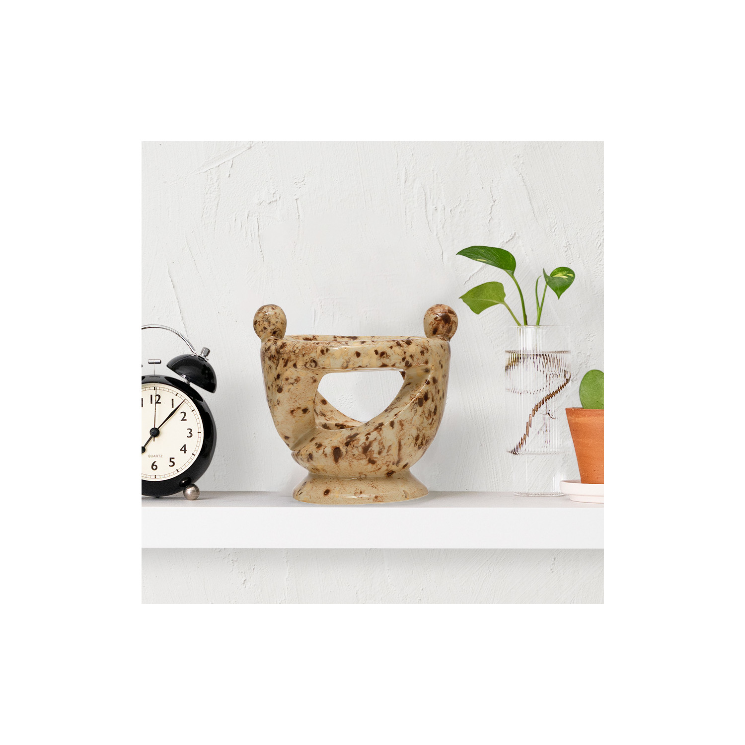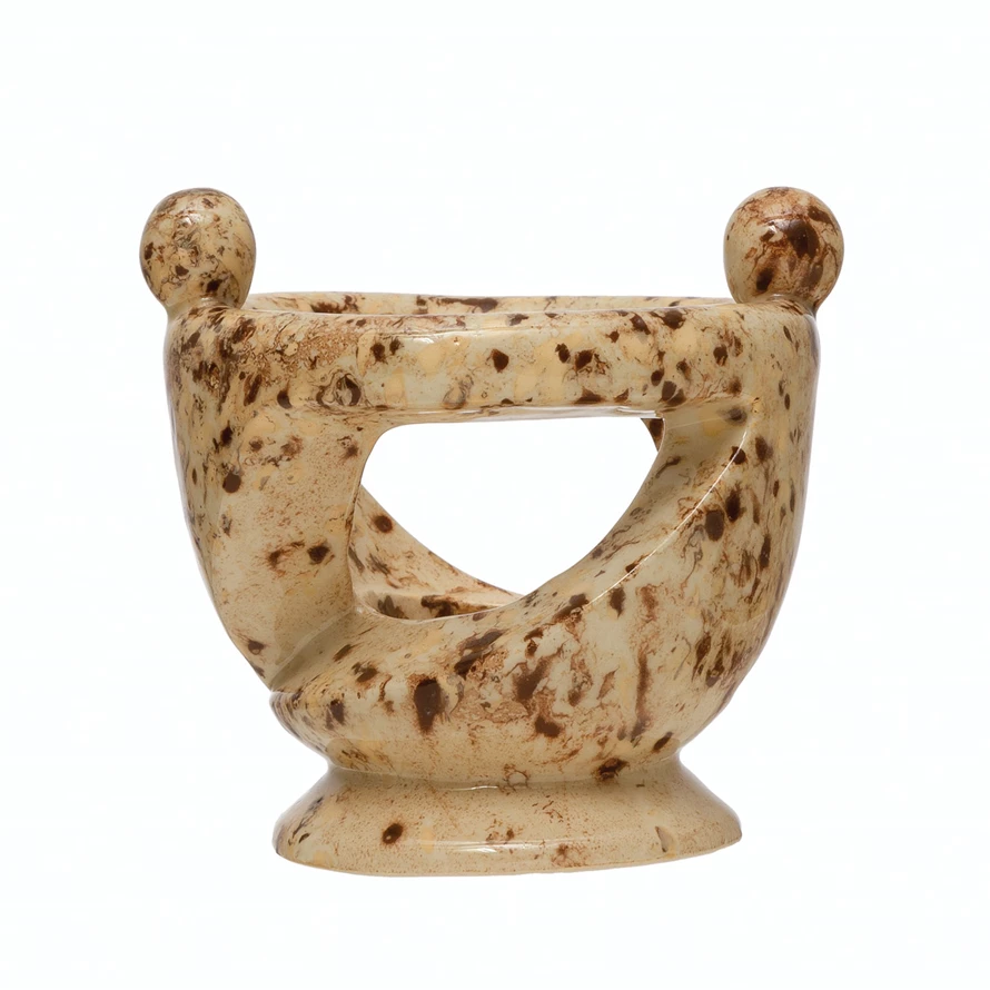 This romantic tealight holder features a minimalist hand in hand stoneware sculpture in a unique reactive glaze. Stoneware hand in hand tealight holder in reactive glaze finish. Create the ultimate tablescape with this thoughtfully crafted candleholder. Display this stylishly versatile candle holder as a sophisticated mantel accent or inviting dining table centerpiece.