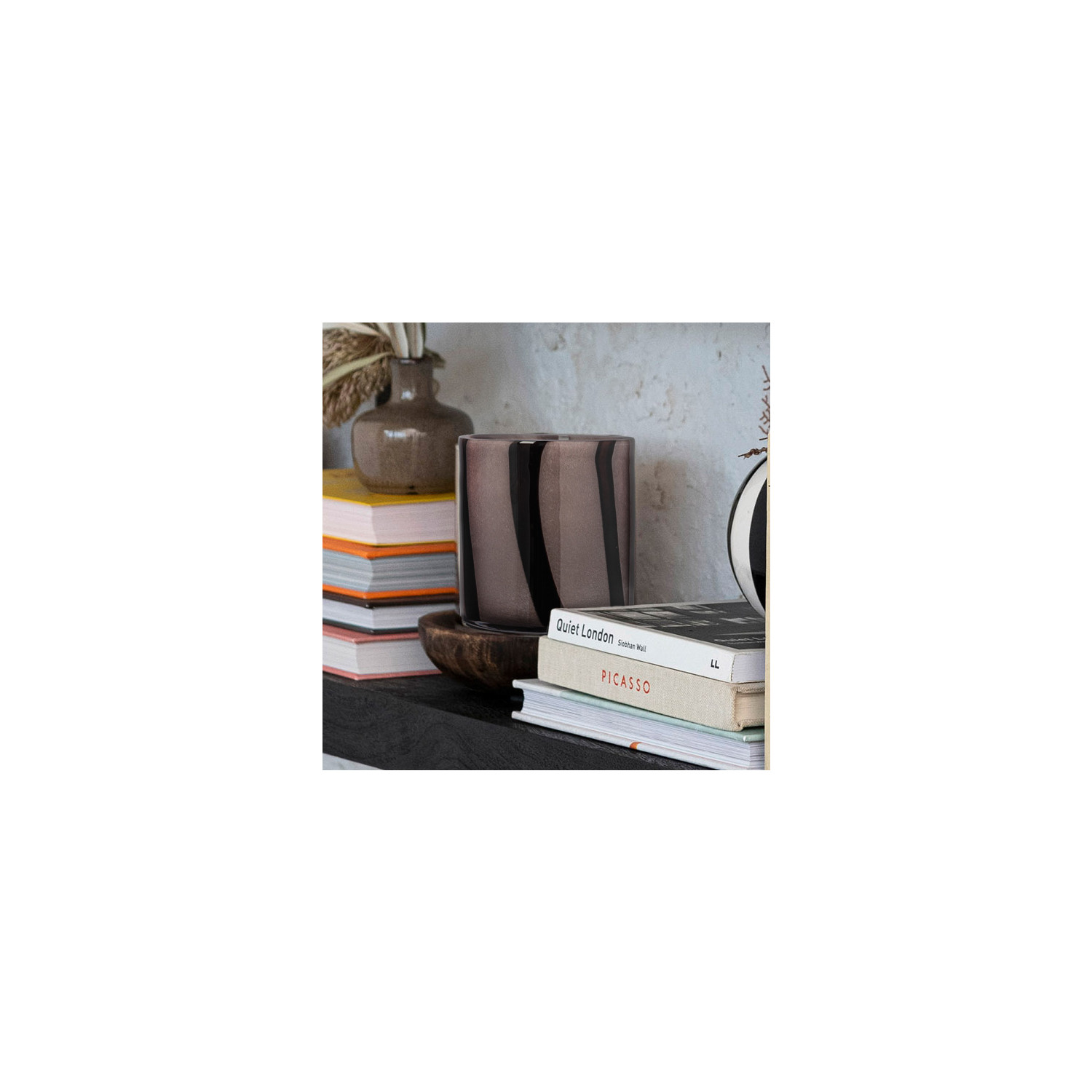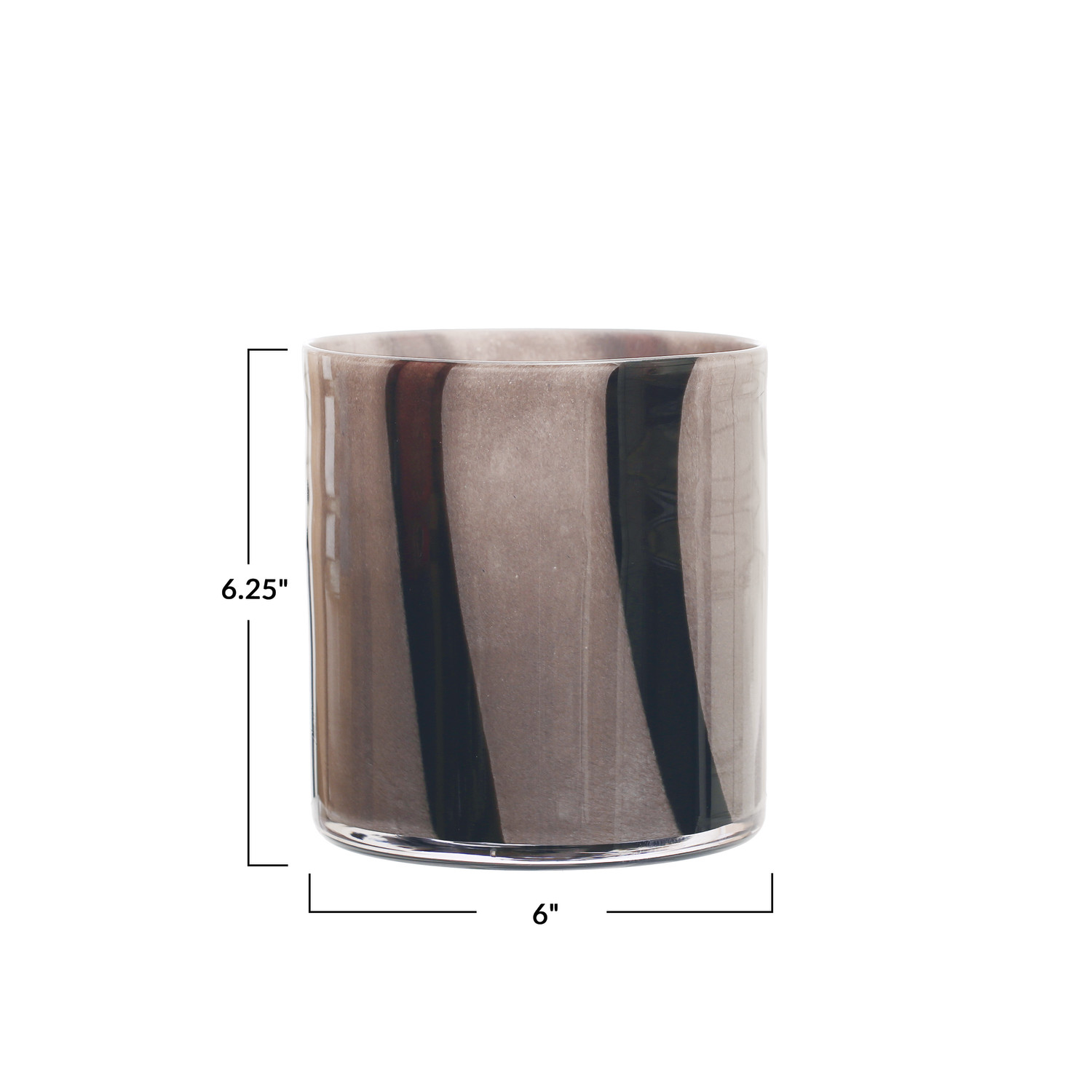 6" Round x 6-1/4"H Glass Candle Holder/Vase w/ Stripes, Grey & Purple