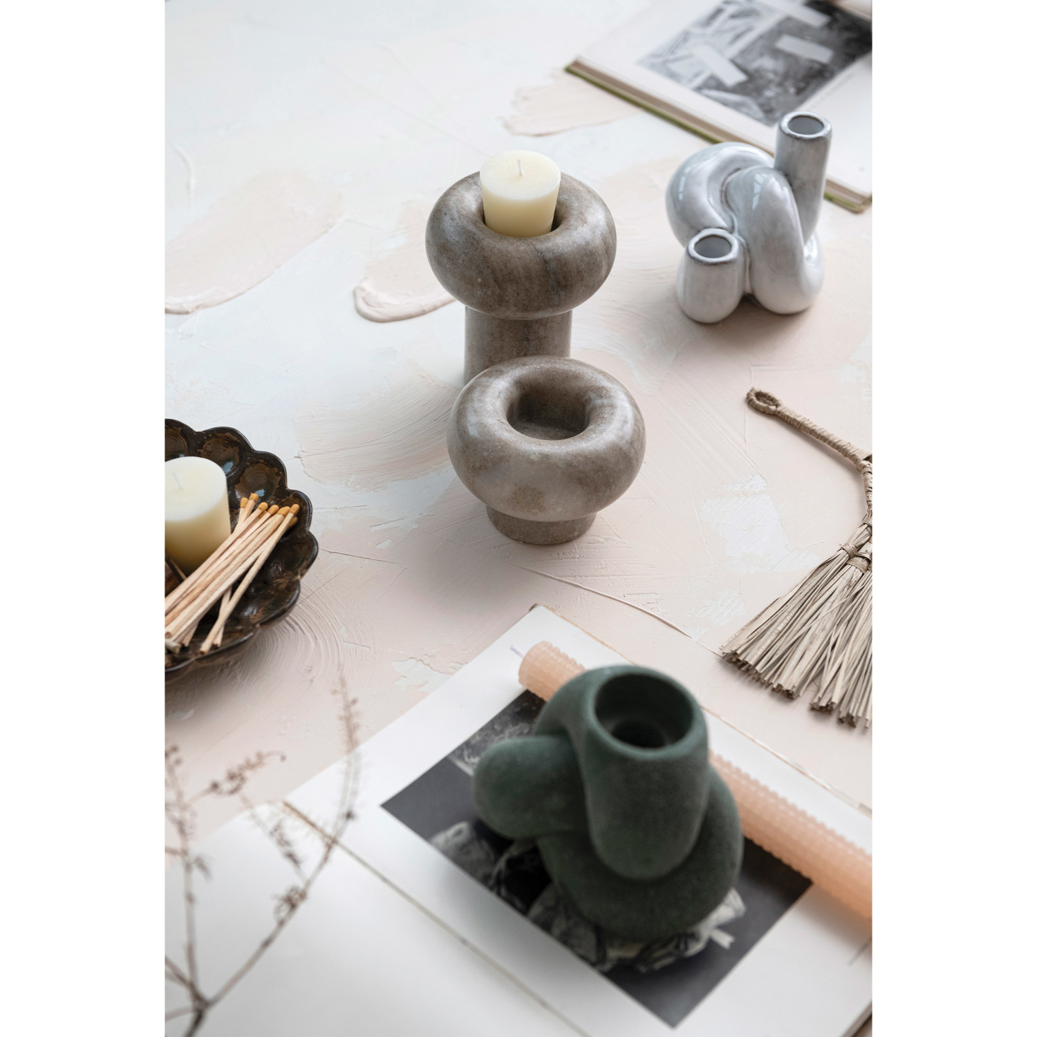 Elegant and versatile, the candle holders offered are more than mere accessories; they serve as expressions of one's style and mood. Crafted from various materials such as metal, glass, and stoneware, these candle holders boast a range of designs that effortlessly complement any decor. With the ability to accommodate an array of candle types, from tea lights to pillars, they prove to be both user-friendly and easy to maintain. Intended for use in any room where the soothing radiance of candles is desired, these holders are thoughtfully designed to elevate the ambiance and create a captivating atmosphere. Whether aiming to cultivate a romantic, cozy, or festive setting, these candle holders are well-equipped to assist. Browse through the exquisite collection to discover the perfect pieces that will illuminate space with elegance and charm. With these candle holders, the home or event will be transformed into a captivating haven. Small and versatile candle holder made of stoneware with a sand finish in green, can hold both tealight and taper candles. Ideal for stony and rustic aesthetics, matches well with shades of green that are often found in natural or earthy spaces. Can be used in different settings, such as dining halls, romantic environments, and coffee houses, and can create a cozy and inviting atmosphere. Made from pure stoneware.