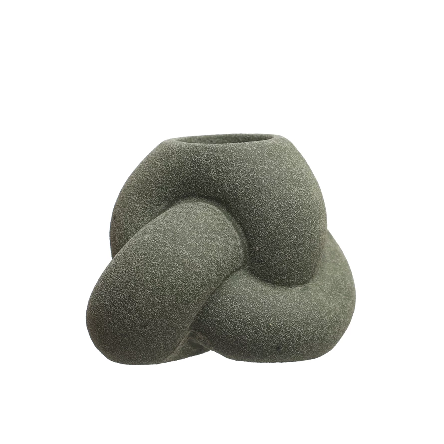 Catalog Name: 4-3/4"L x 3-1/4"W x 3-3/4"H Stoneware Tealight/Taper Holder, Sand Finish, Green