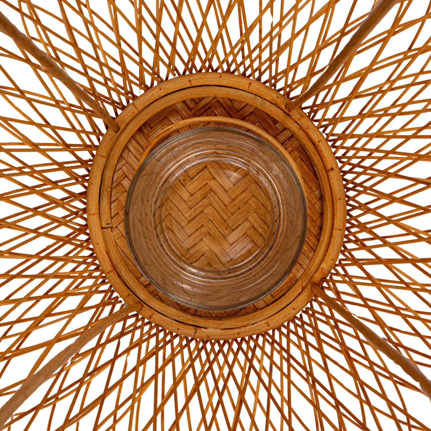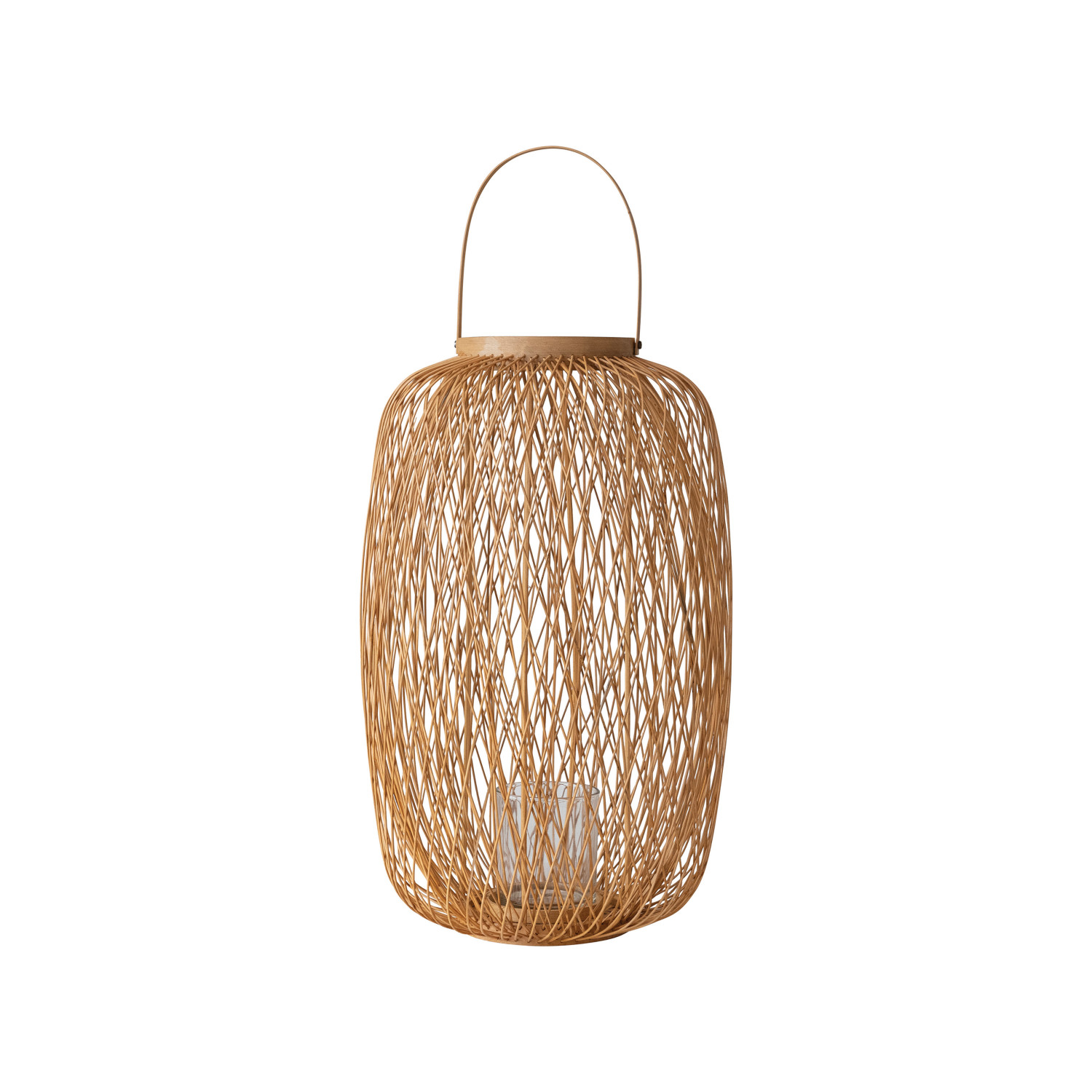 Catalog Name: 13-3/4" Round x 19-3/4"H Hand-Woven Bamboo Lantern w/ Glass Insert & Handle, Natural (Holds 3" Pillar)