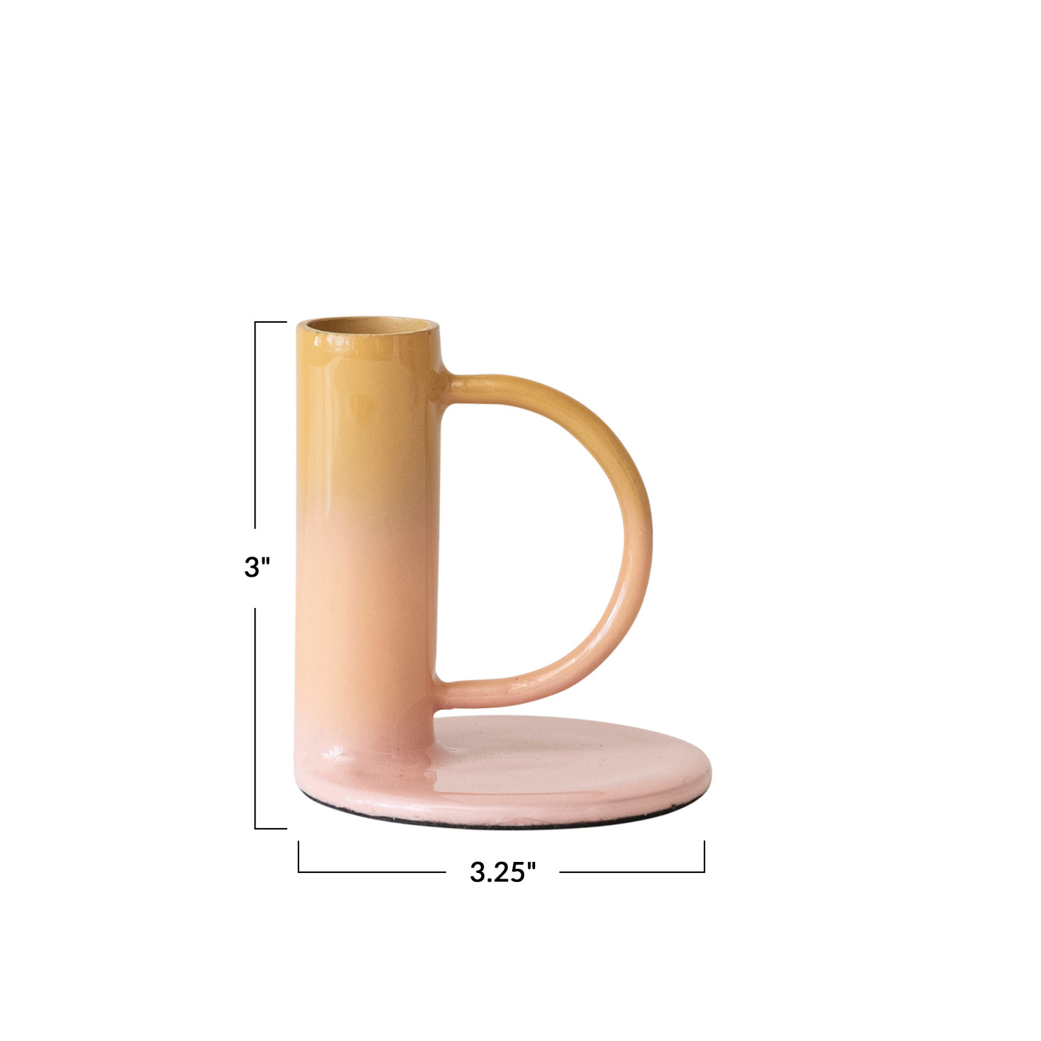 Catalog Name: 3" Round x 3-1/4"H Enameled Metal Taper Holder w/ Handle, Yellow & Pink Ombre