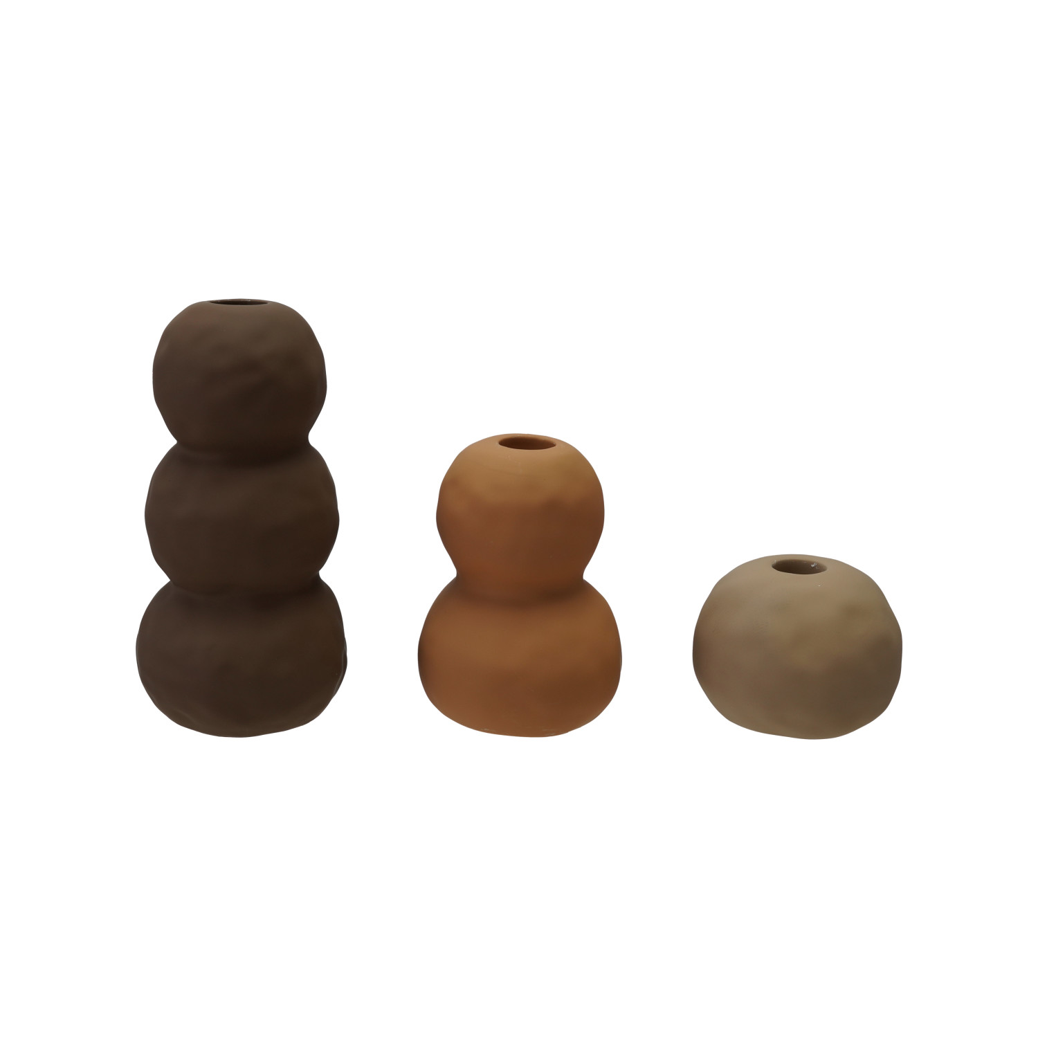 Catalog Name: 2-1/2"H - 6-1/2"H Stoneware Taper Holder, Latex Glaze, Brown, Camel & Tan Color, Set of 3
