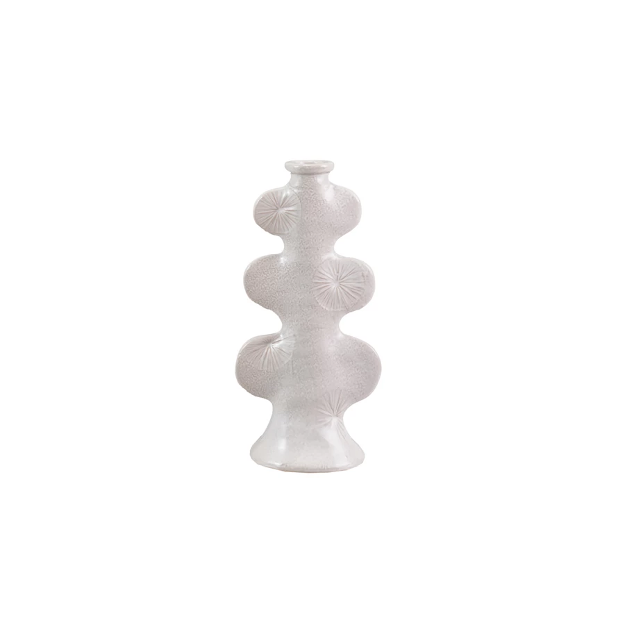 Stoneware Sculptural Taper Holder w/ Embossed Design, White