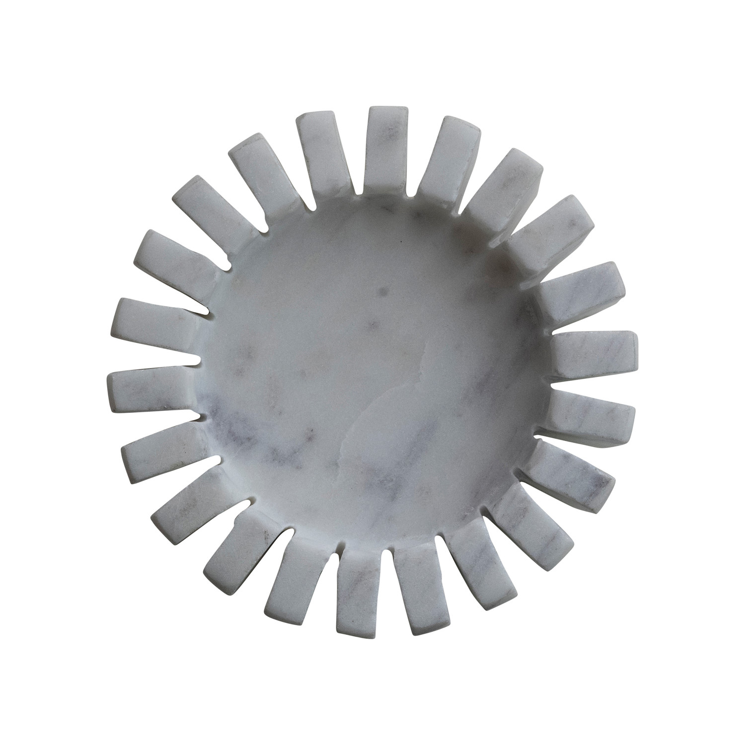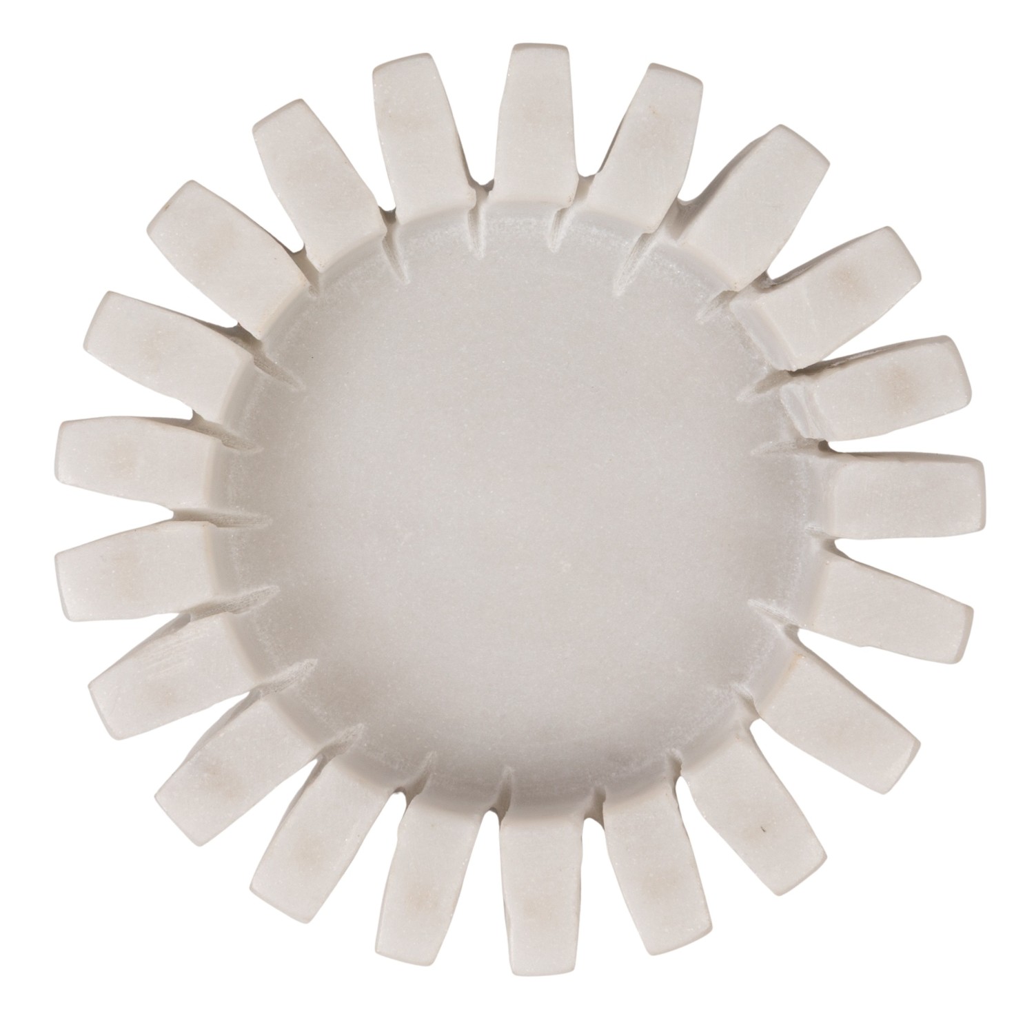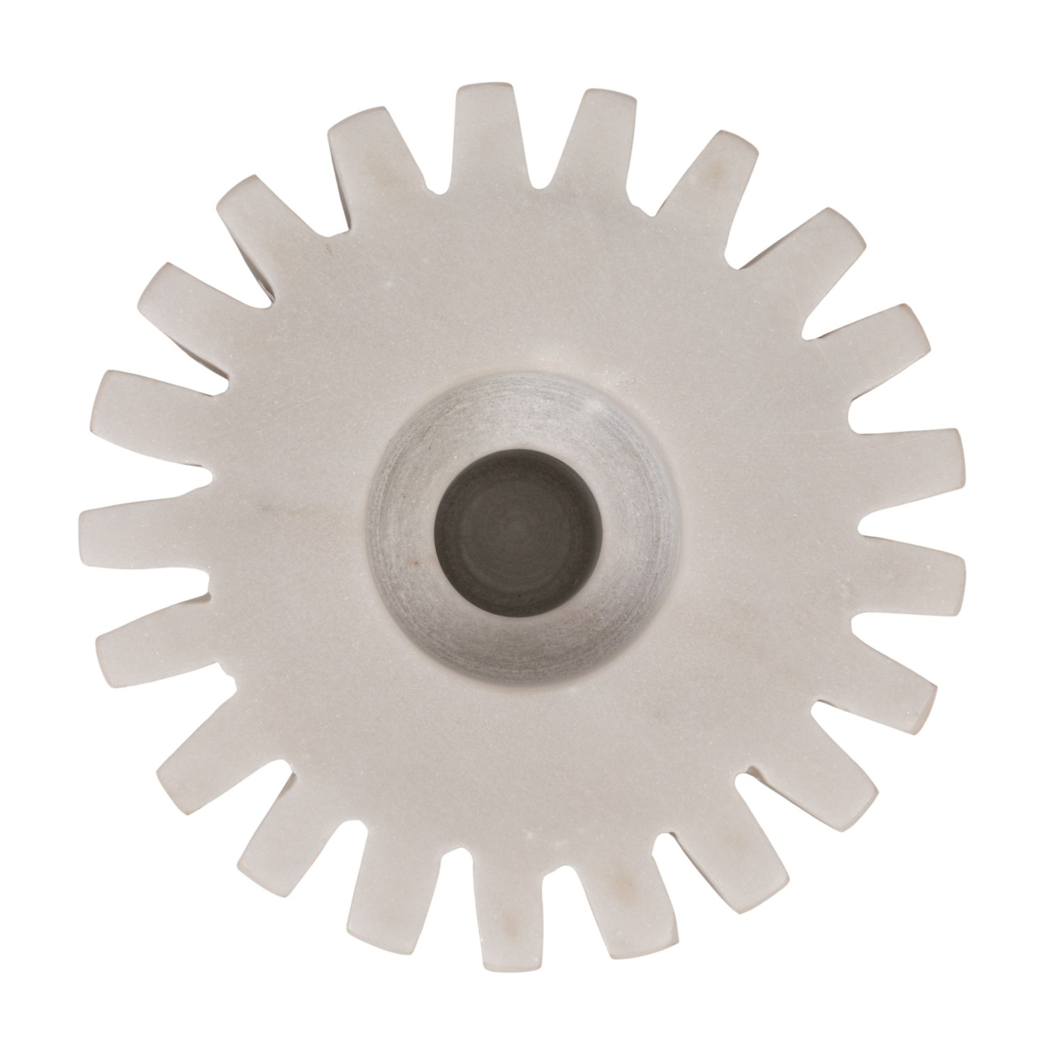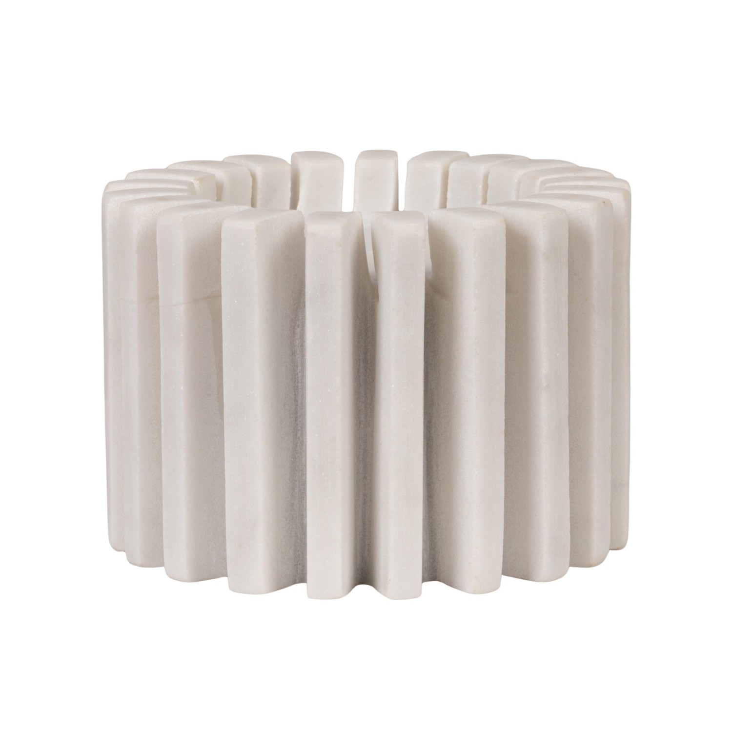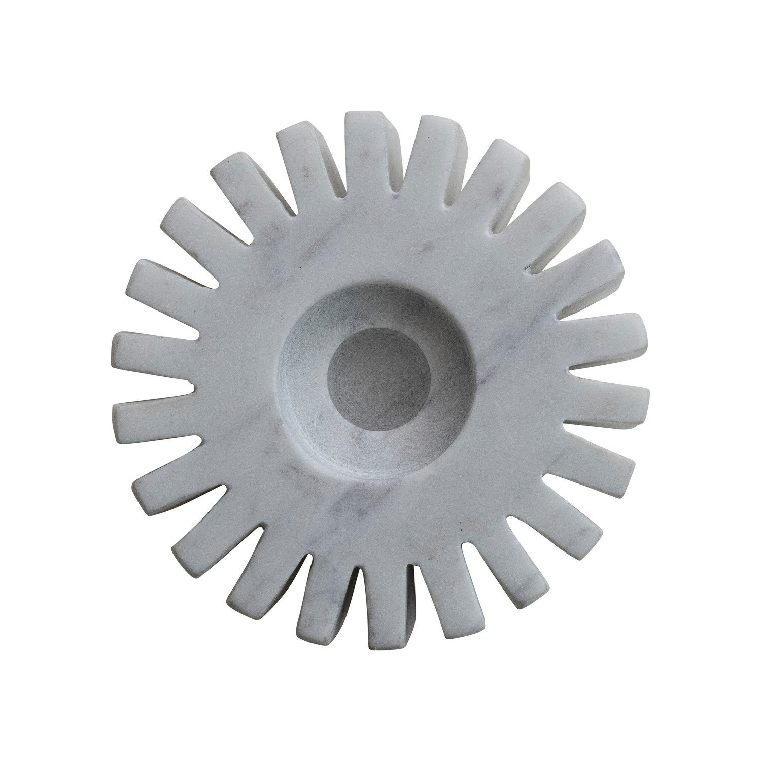 Catalog Name: 4-1/2" Round x 3"H Marble Cogged 2-Sided Pillar/Taper/Tealight Holder, White