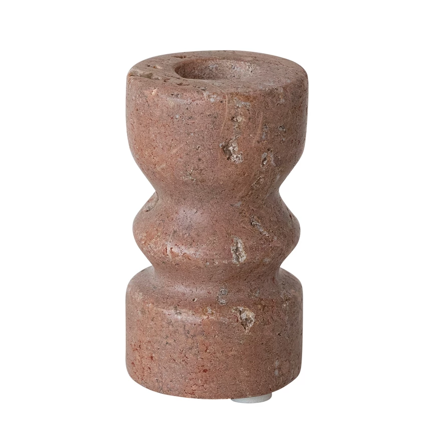 Red Travertine Taper Holder (Each One Will Vary)