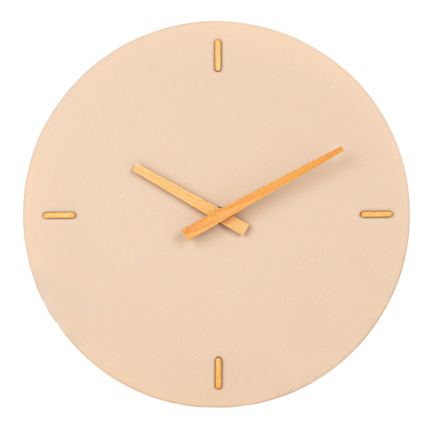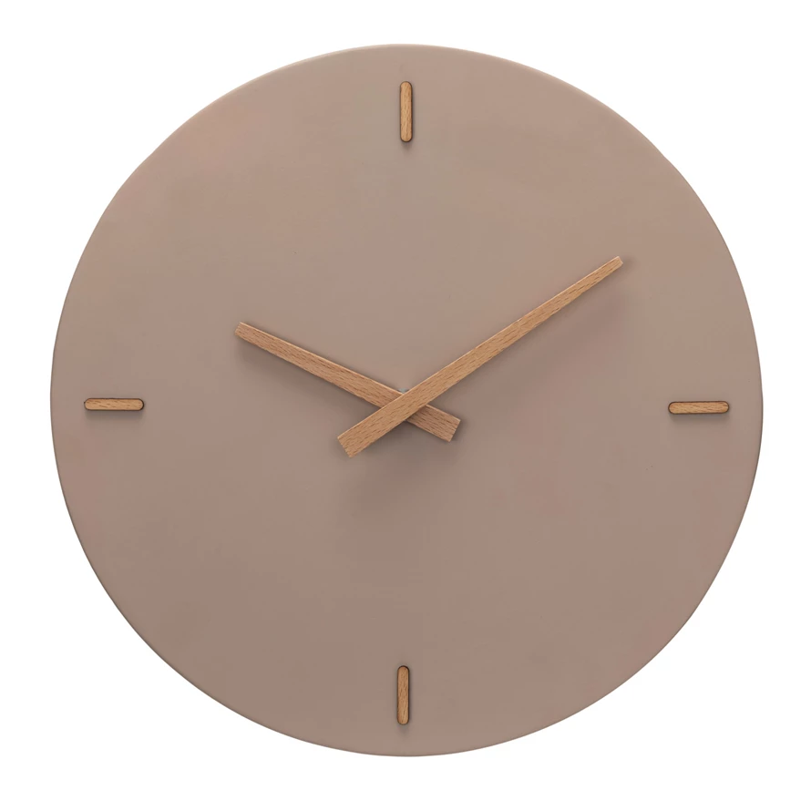 This beige and natural stoneware and wood wall clock is a practical and stylish addition to any space. Its beige stoneware face and natural wood frame add warmth and simplicity. The clock is made of durable materials like stoneware and wood, with a smooth, textured surface. It features a clear, easy-to-read dial and hands that accurately display time. It has a hook at the back for easy wall hanging. It requires an AA battery to operate, which is not included in the package. This clock can be used in various spaces, including living rooms, bedrooms, offices, and kitchens, and can match various styles like Scandinavian, boho, global, modern, or French country. It's a perfect gift for those who love clocks and natural materials.