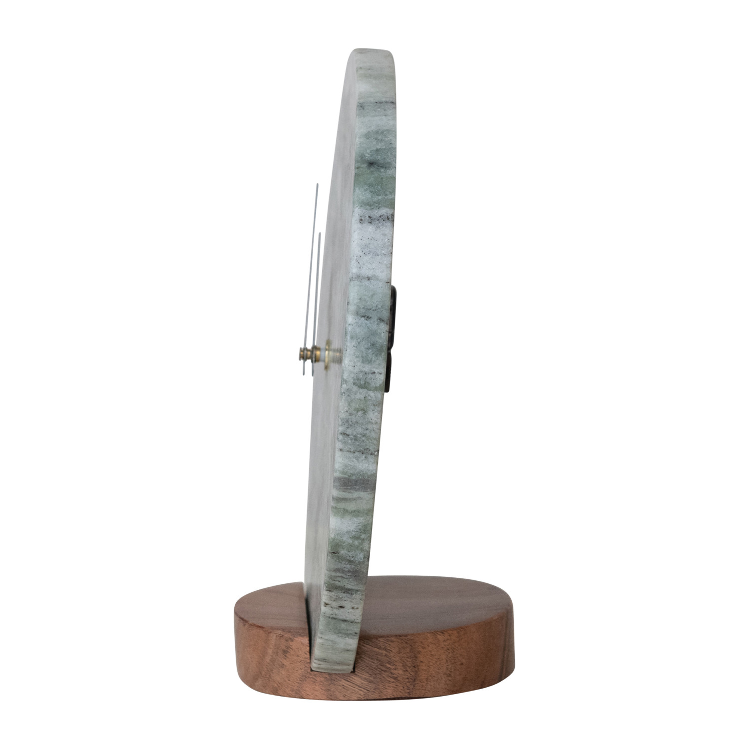 Catalog Name: 9"W x 4"D x 9"H Marble Clock w/ Acacia Wood Base, Green Melange & Natural, Set of 2 (Requires 1-AA Battery) (Each One Will Vary)