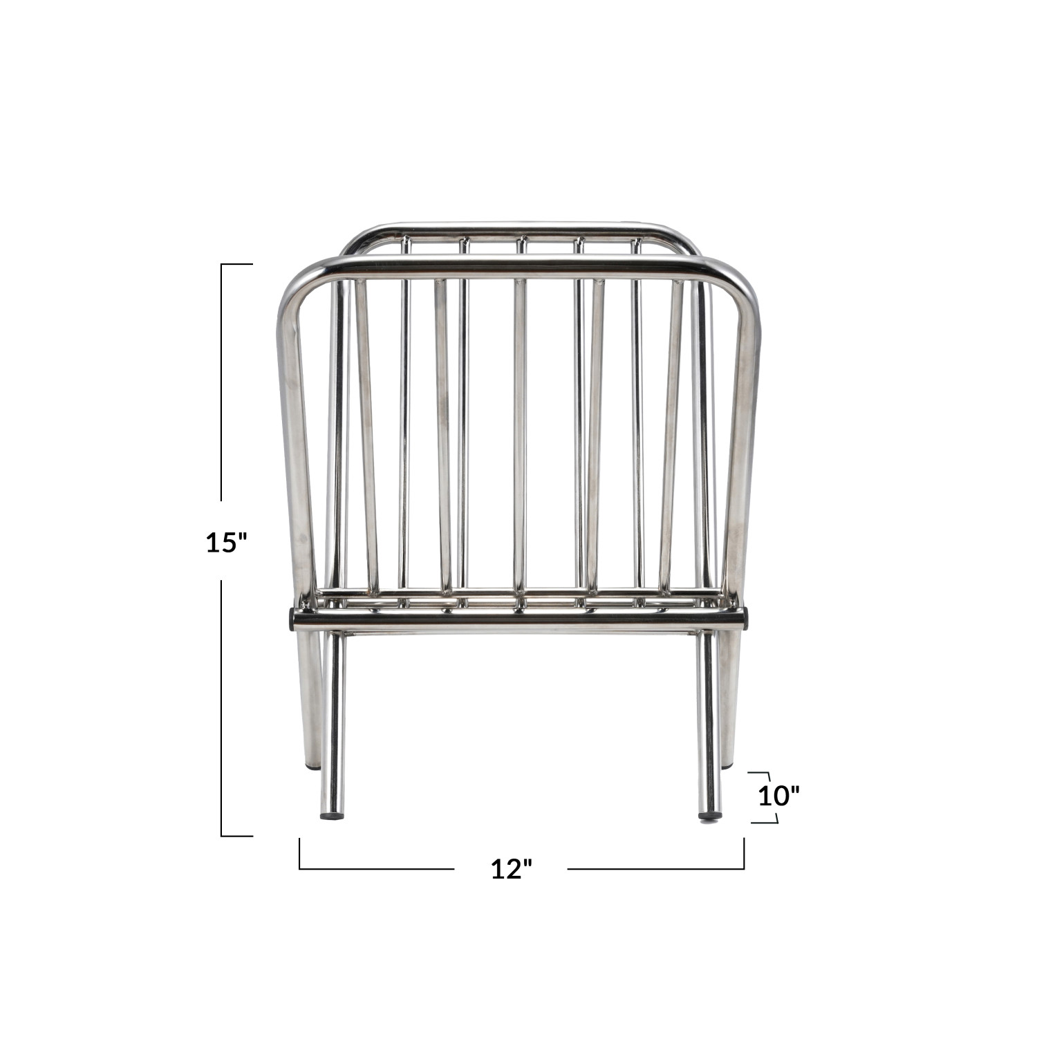 Catalog Name: 12"L x 10"W x 15"H Metal Magazine Rack, Chrome Finish, KD