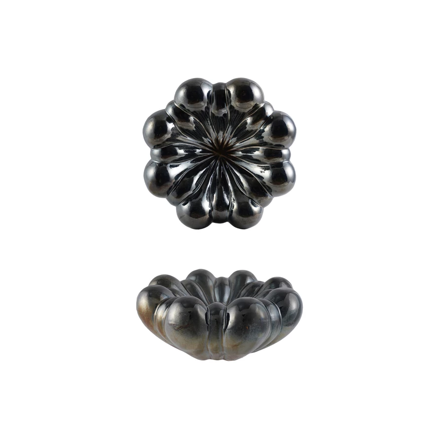 Catalog Name: 12" Round x 5-1/2"H Decorative Stoneware Abstract Shaped Bowl, Reactive Glaze, Metallic Bronze Finish (Each One Will Vary)