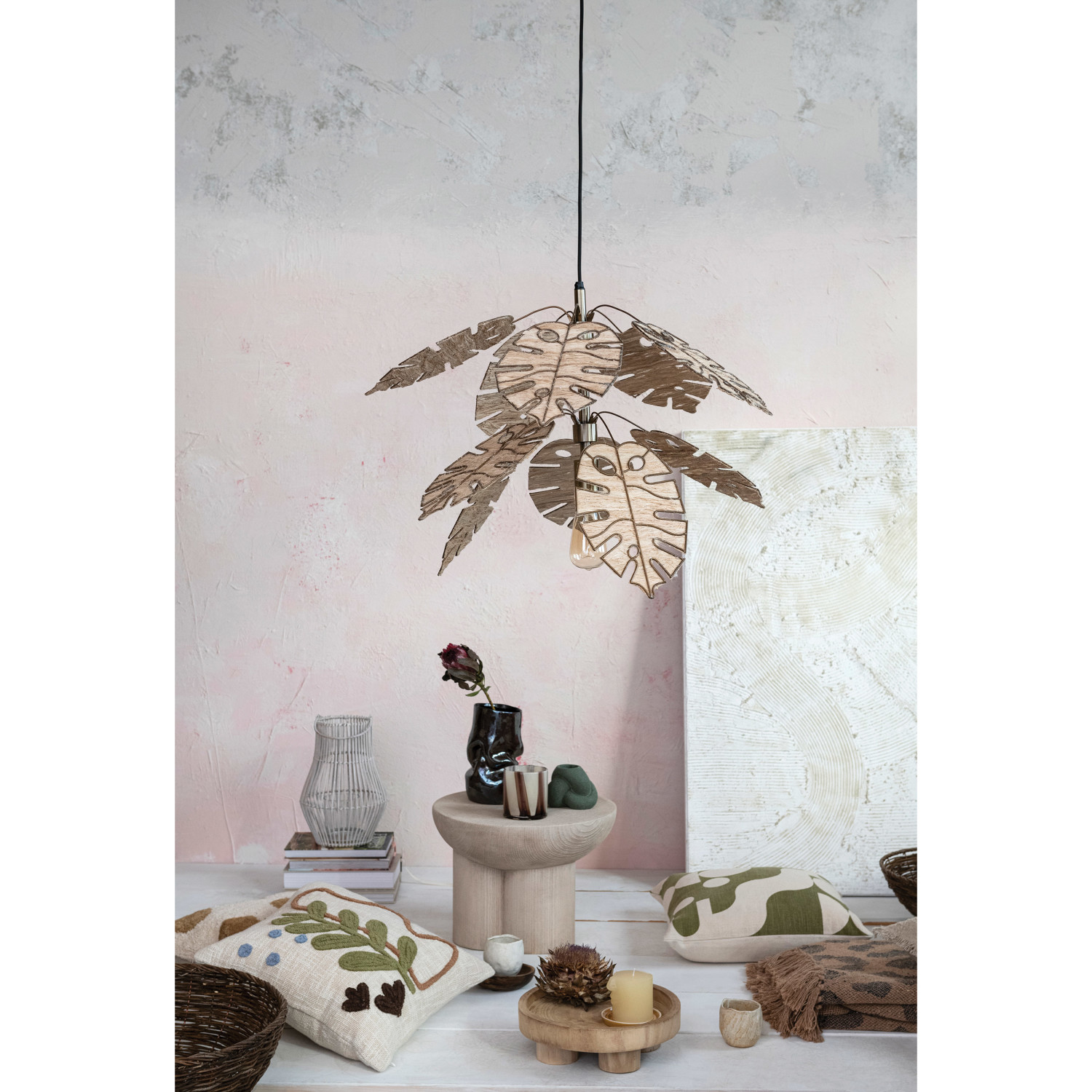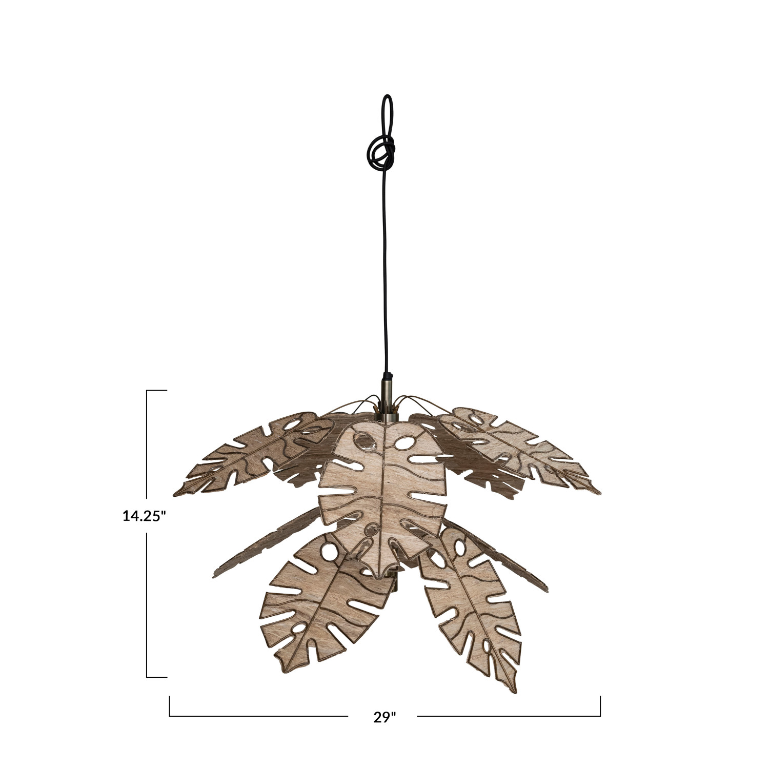 Metal & Banana Fiber Leaf Pendant Lamp, Antique Brass Finish, 6' Cord, KD