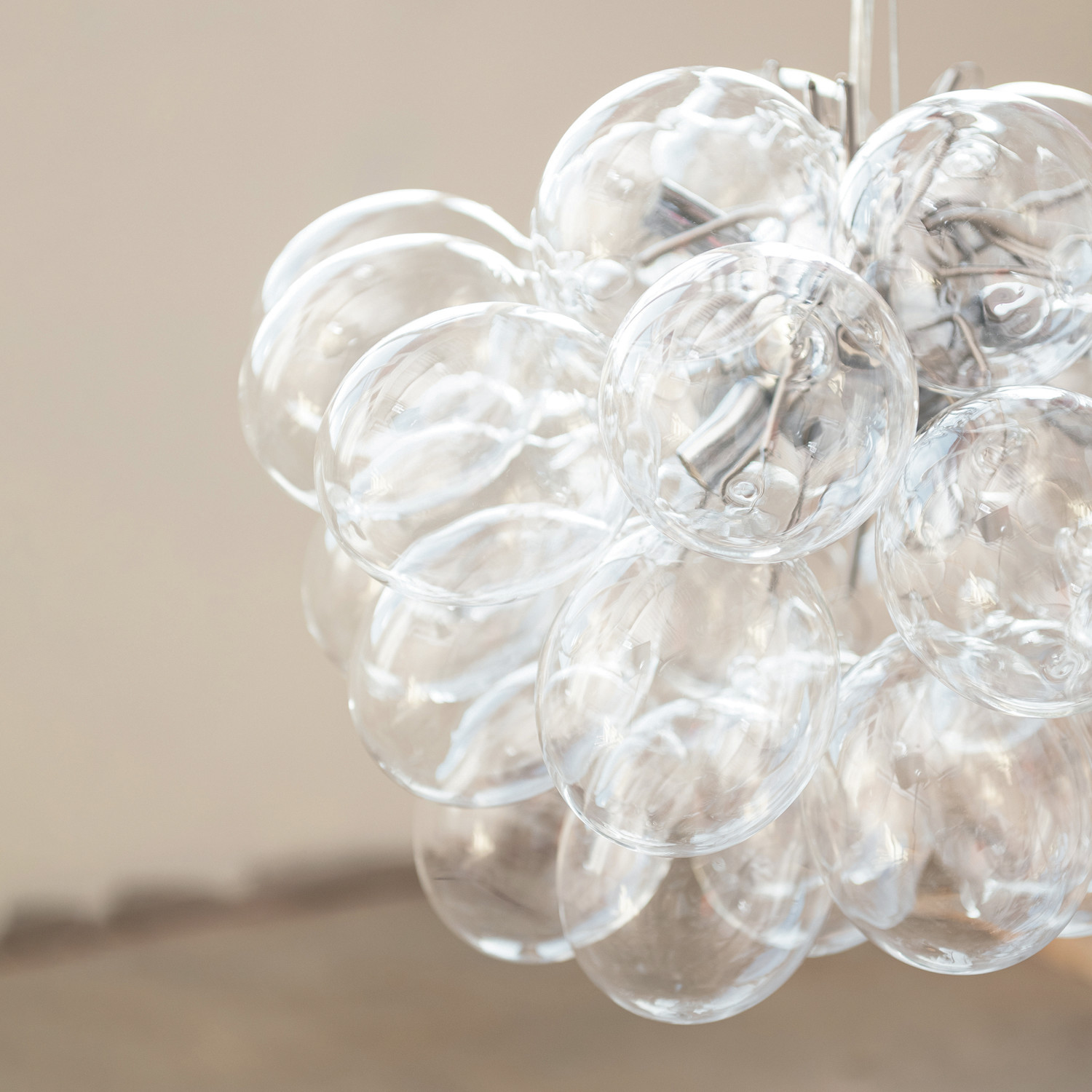 Catalog Name: 19-1/2" Round x 19-1/2"H Glass Bulb & Metal Pendant Lamp w/ 8 Lights, 6' Cord, KD (Hardwire Only)