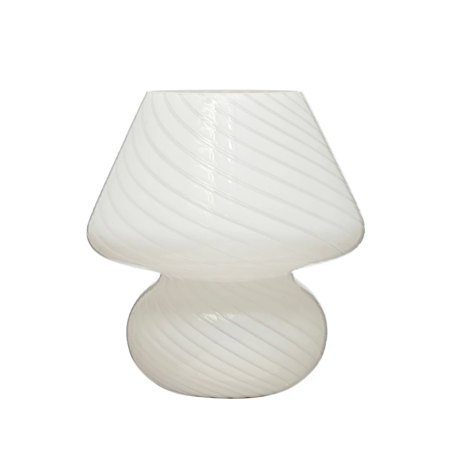 Catalog Name: 8-1/4" Round x 9-1/4"H Hand-Blown Art Glass Table Lamp w/ Inline Switch, White