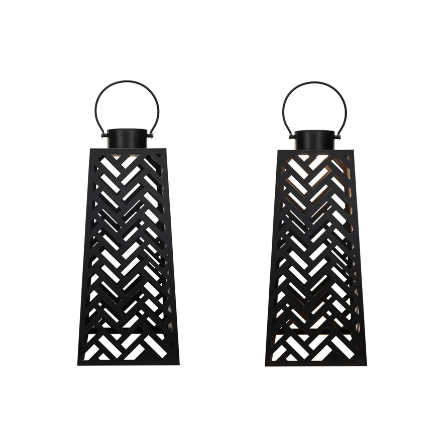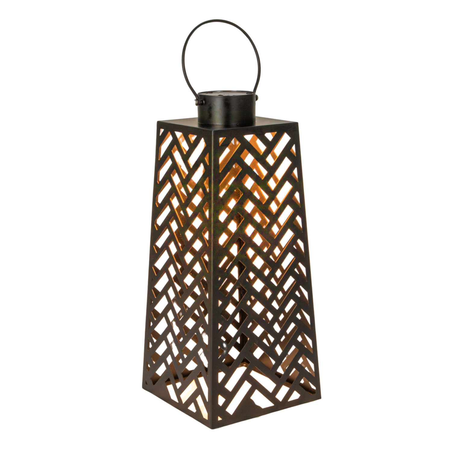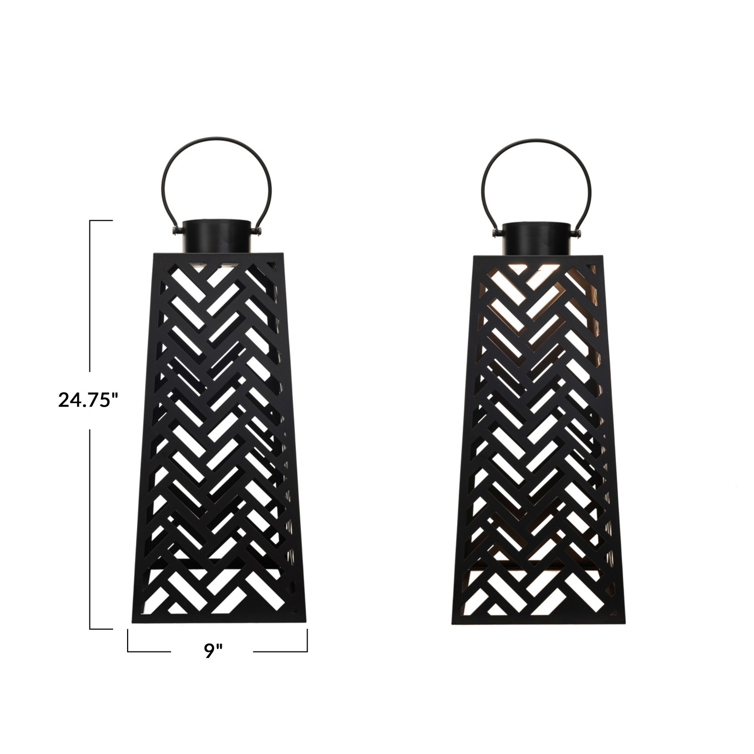 Catalog Name: 9" Round x 24-3/4"H Metal LED Rechargeable Indoor/Outdoor Lantern w/ Cut-Outs & Touch Sensor, Black