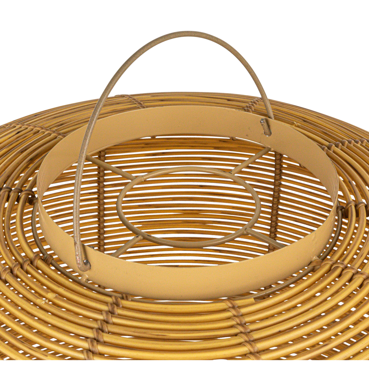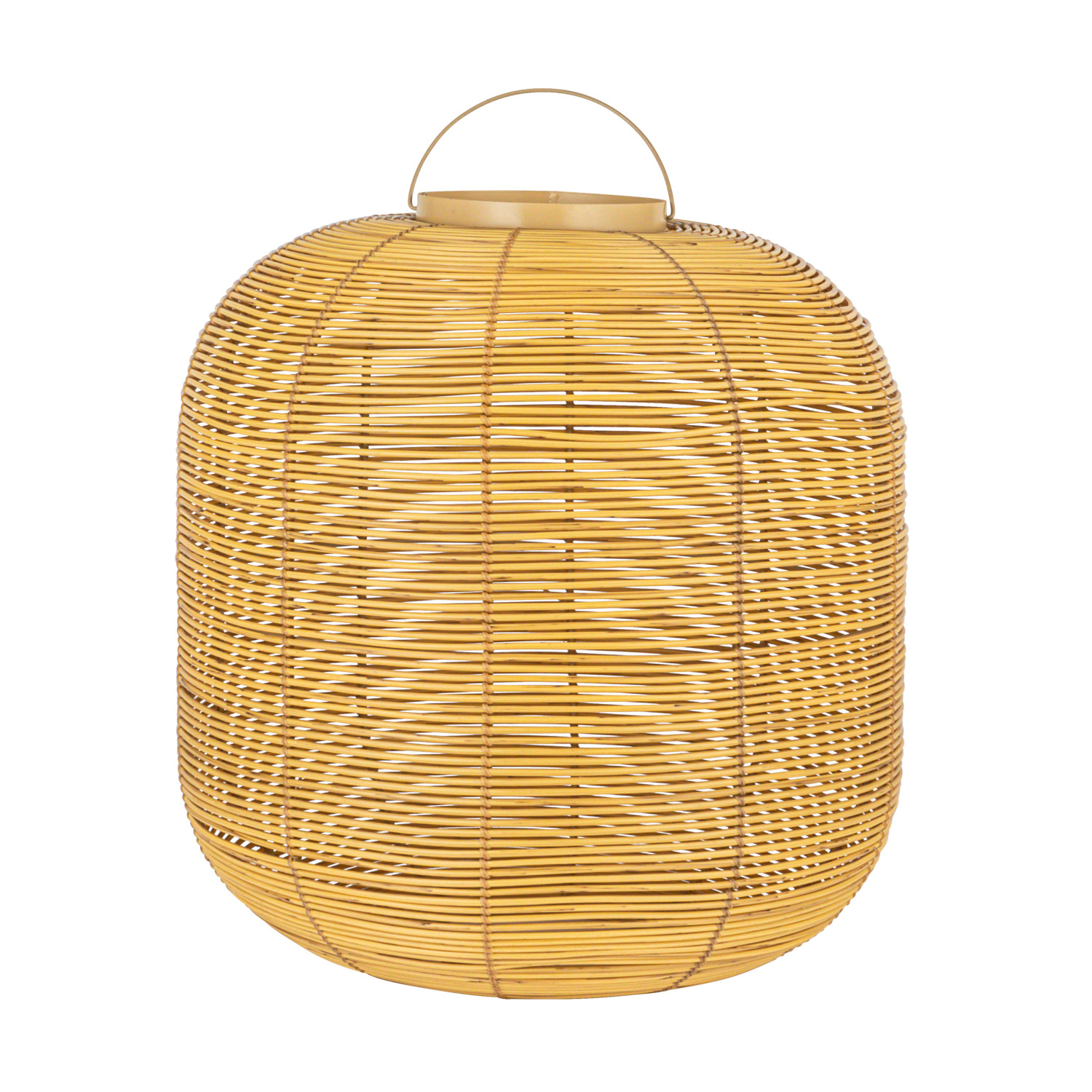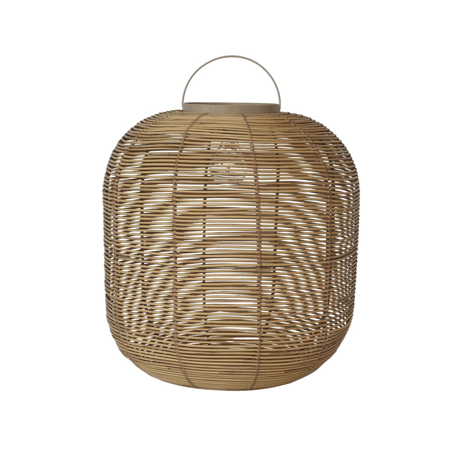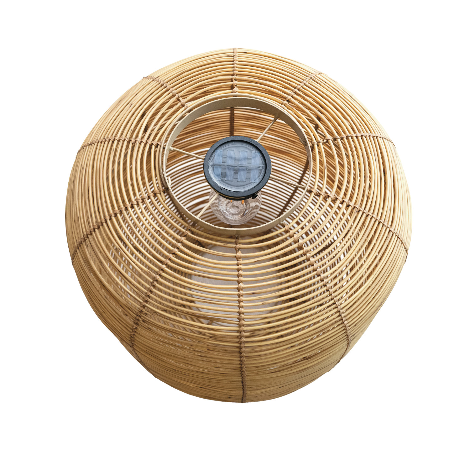 Catalog Name: 18-1/2" Round x 19-3/4"H Woven Plastic Solar Powered LED Lantern w/ Handle, Natural Finish (Bulb Included)