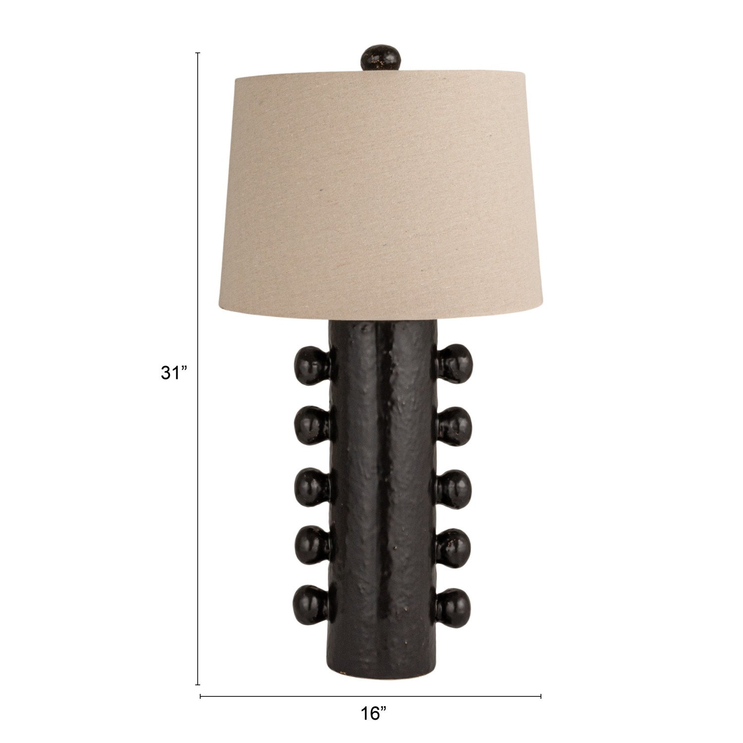 Stoneware Table Lamp with Balls, Linen Shade & Inline Switch, Black