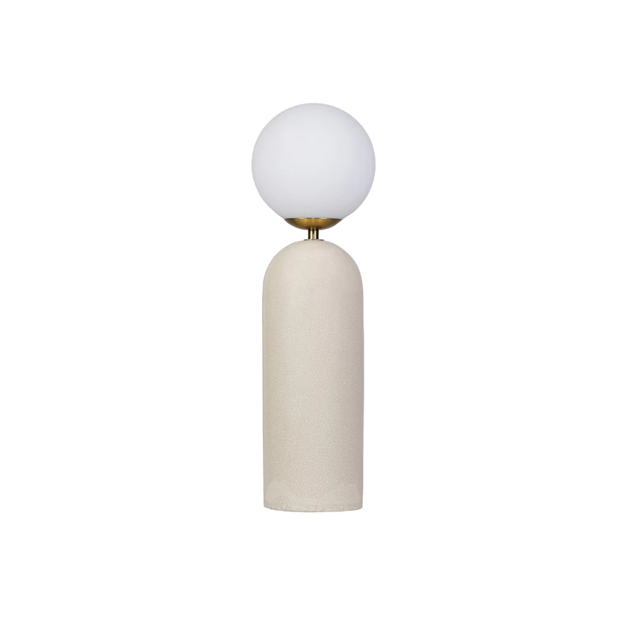 Catalog Name: 6" Round x 15-3/4"H Stoneware & Metal Table Lamp w/ Frosted Globe & Inline Switch, Crackle Glaze, Cream Color & Gold Finish (Each One Will Vary)
