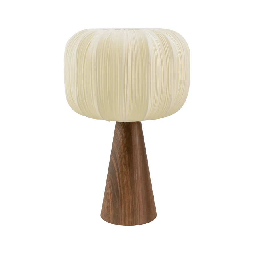 Metal Table Lamp w/ Pleated Fabric Shade & Inline Switch, Wood Finish