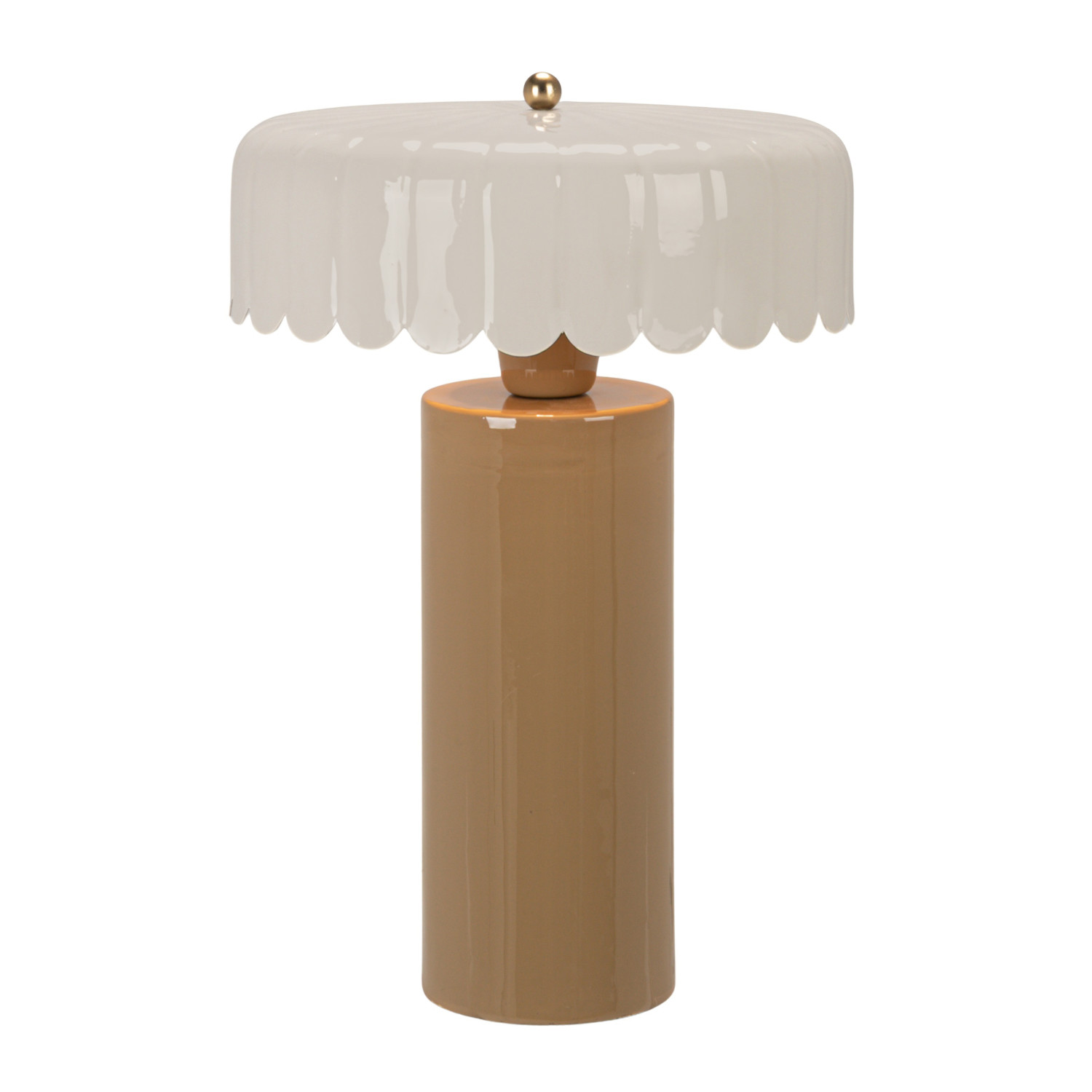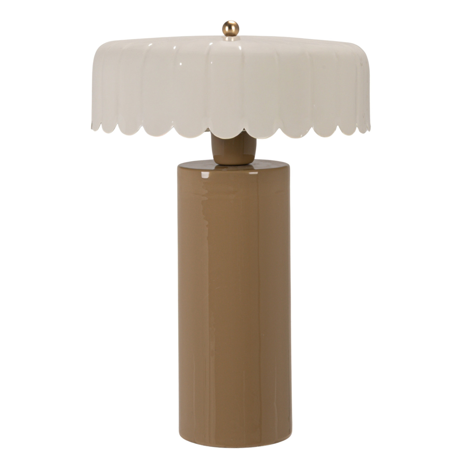 Enameled Metal Table Lamp with Scalloped Shade & Inline Switch, Grey & Olive Color