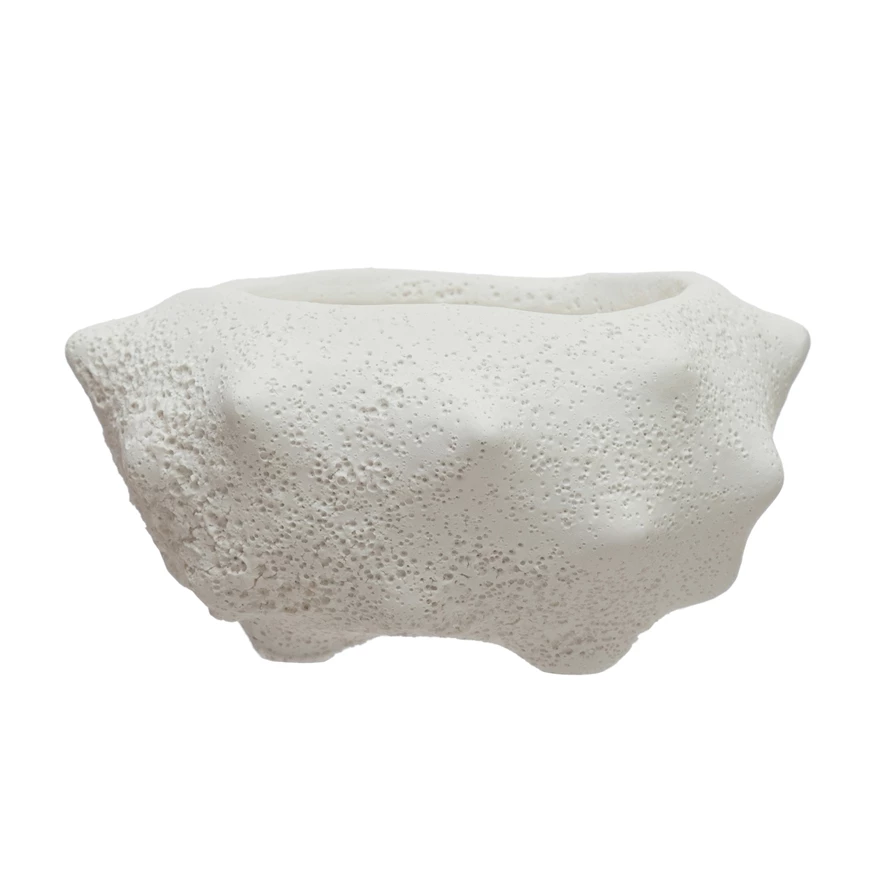 Catalog Name: 4"L x 3-1/2"W x 2"H Coarse Terra-cotta Planter, Volcano Finish, Distressed White (Holds 2" Pot) (Each One Will Vary)