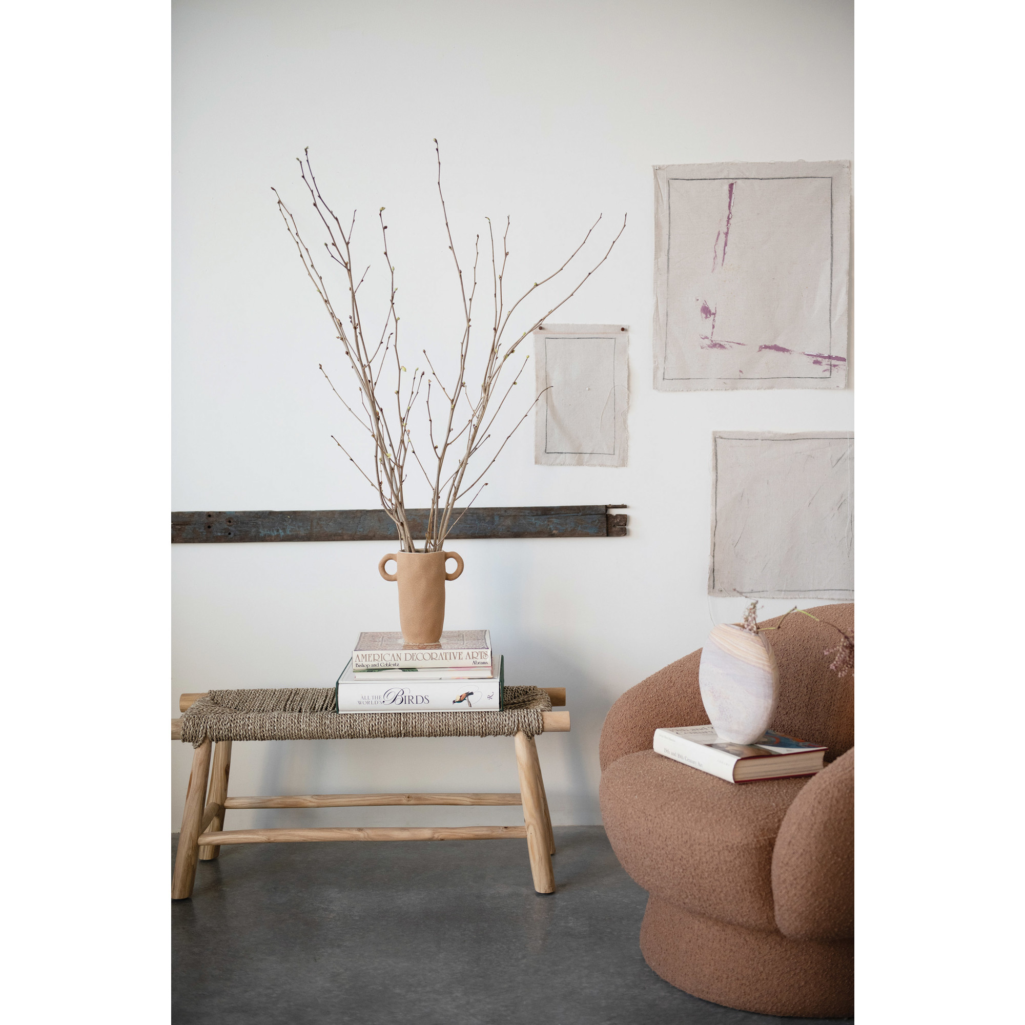 Stoneware Vase with Handles, Sand Finish