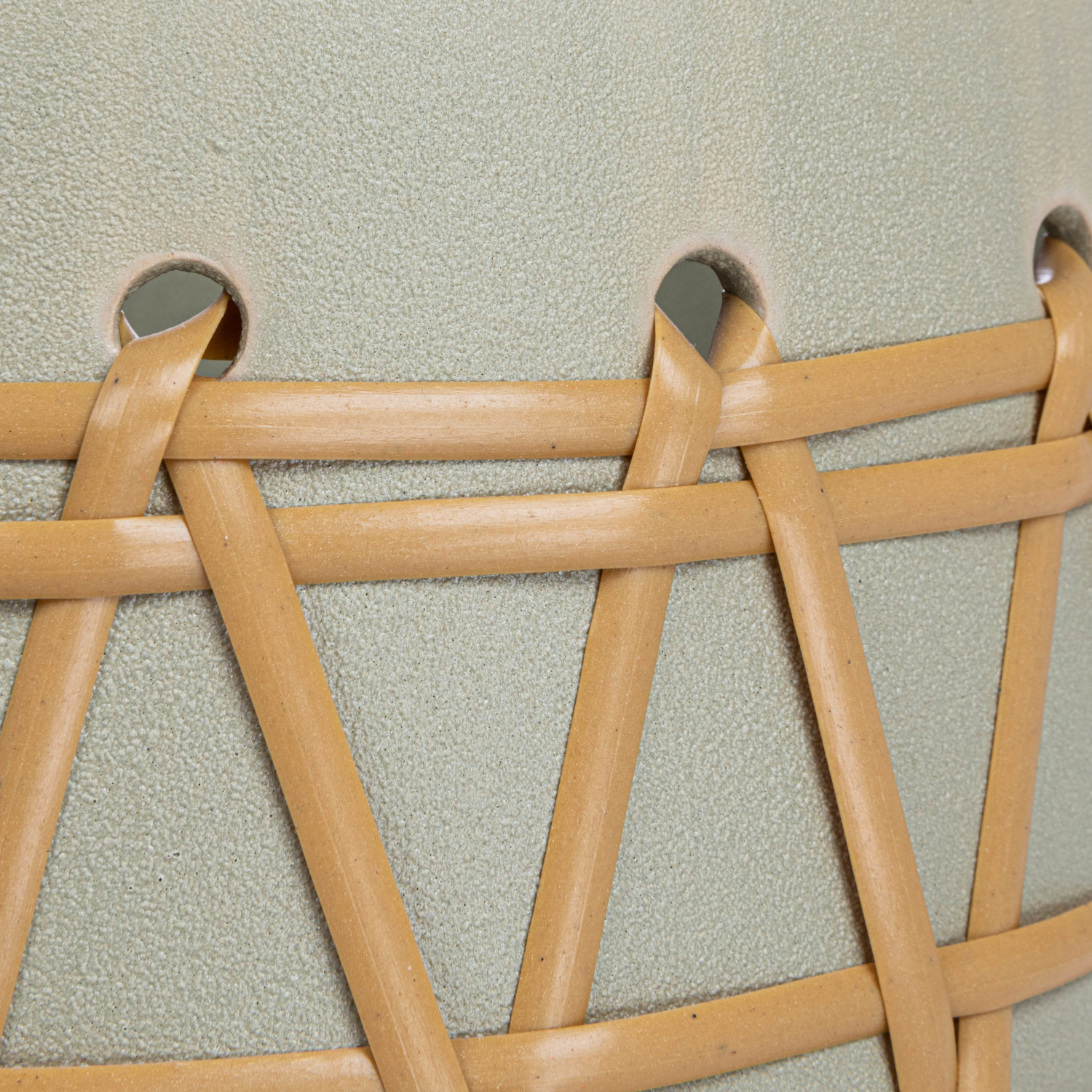 Stoneware Planter w/ Weaving, Matte Celery Color
