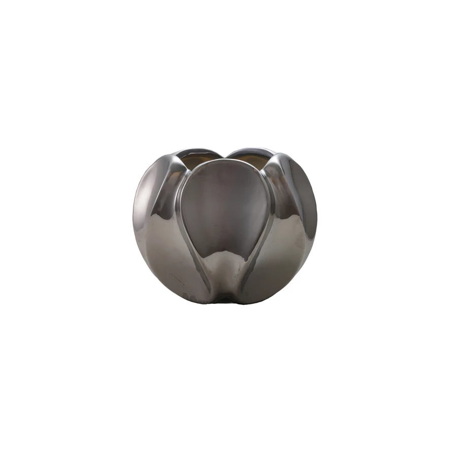 Stoneware Sculpted Planter, Chrome Finish (Holds 3" Pot)
