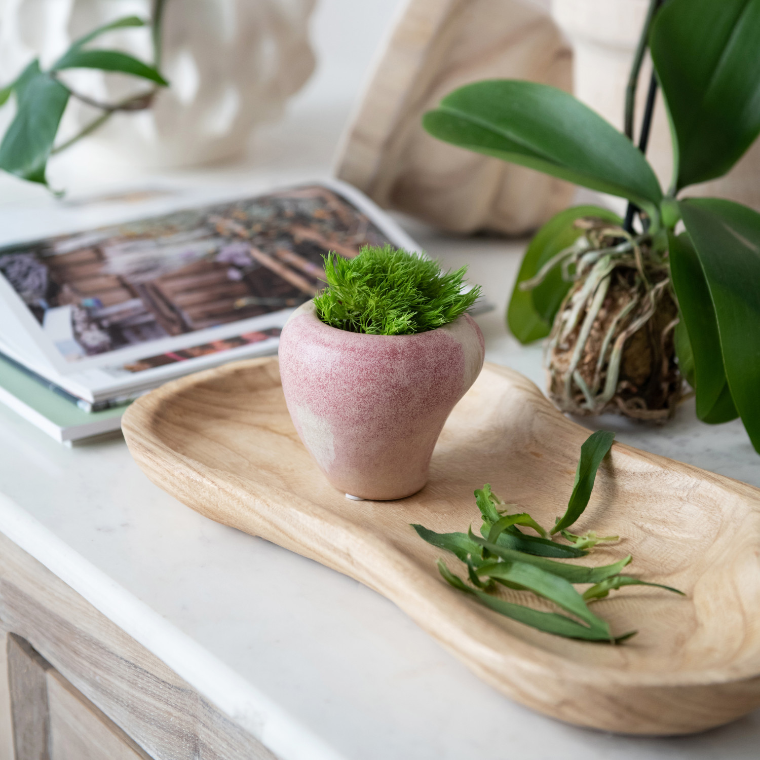 Catalog Name: 4" Round x 3-1/2"H Stoneware Organic Shaped Planter, Reactive Glaze, Natural & Berry Color (Each One Will Vary)