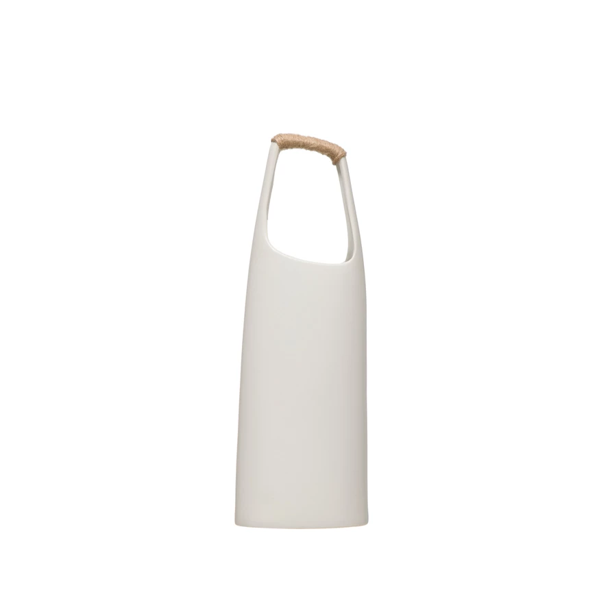 Catalog Name: 6-3/4"L x 3-1/2"W x 19"H Stoneware Vase w/ Rattan Wrapped Handle, White