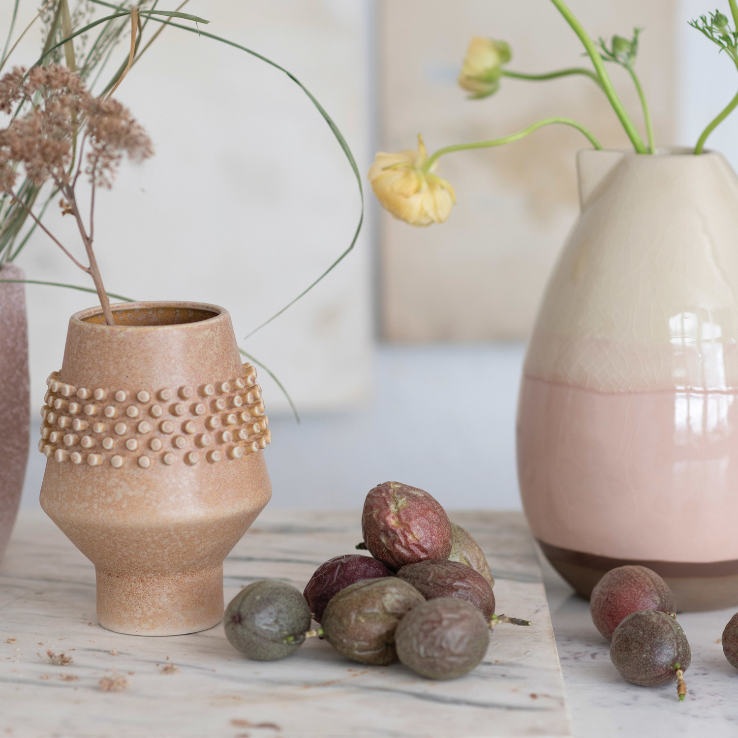 Catalog Name: 7-3/4"L x 7"W x 10-1/2"H Decorative Ceramic Pitcher/Vase, Reactive Crackle Glaze, Pink & Cream Color (Each One Will Vary)