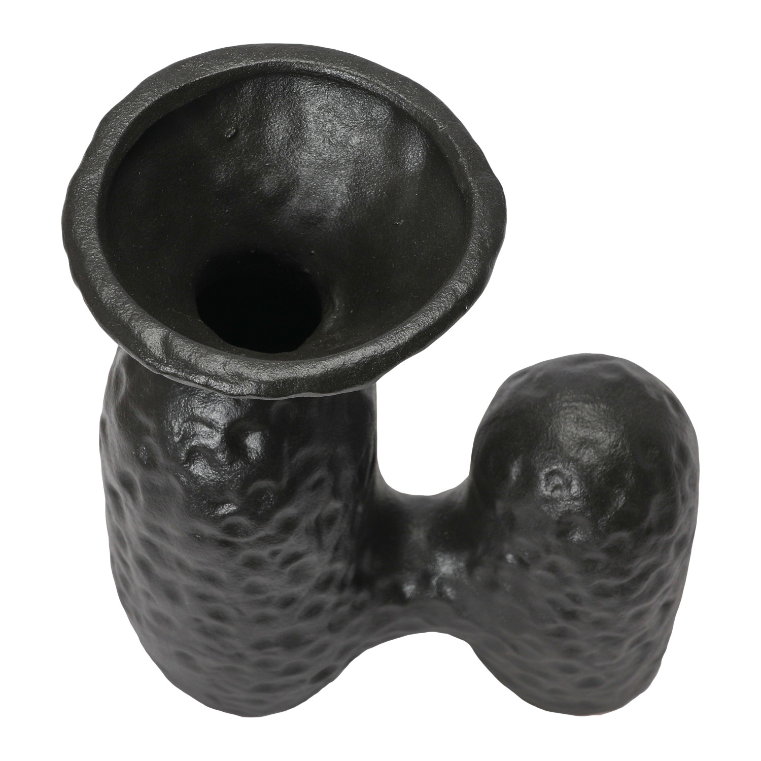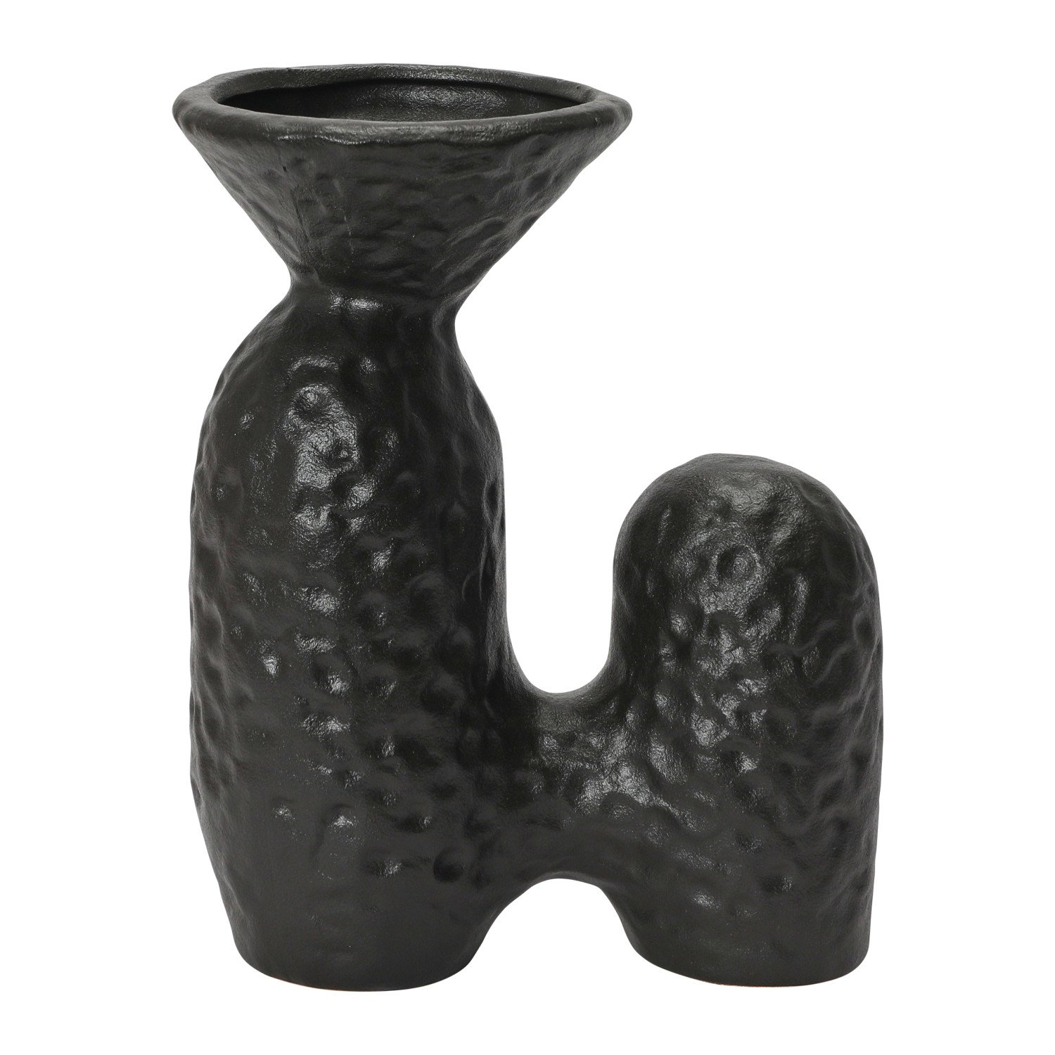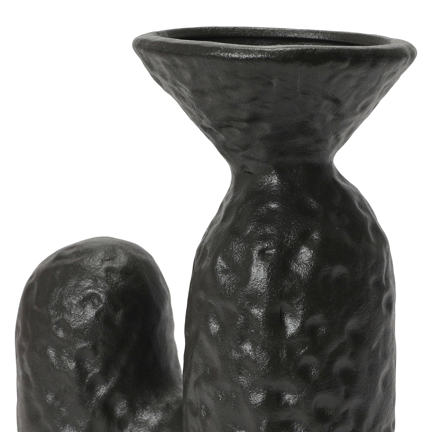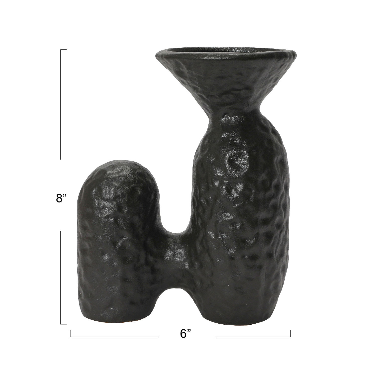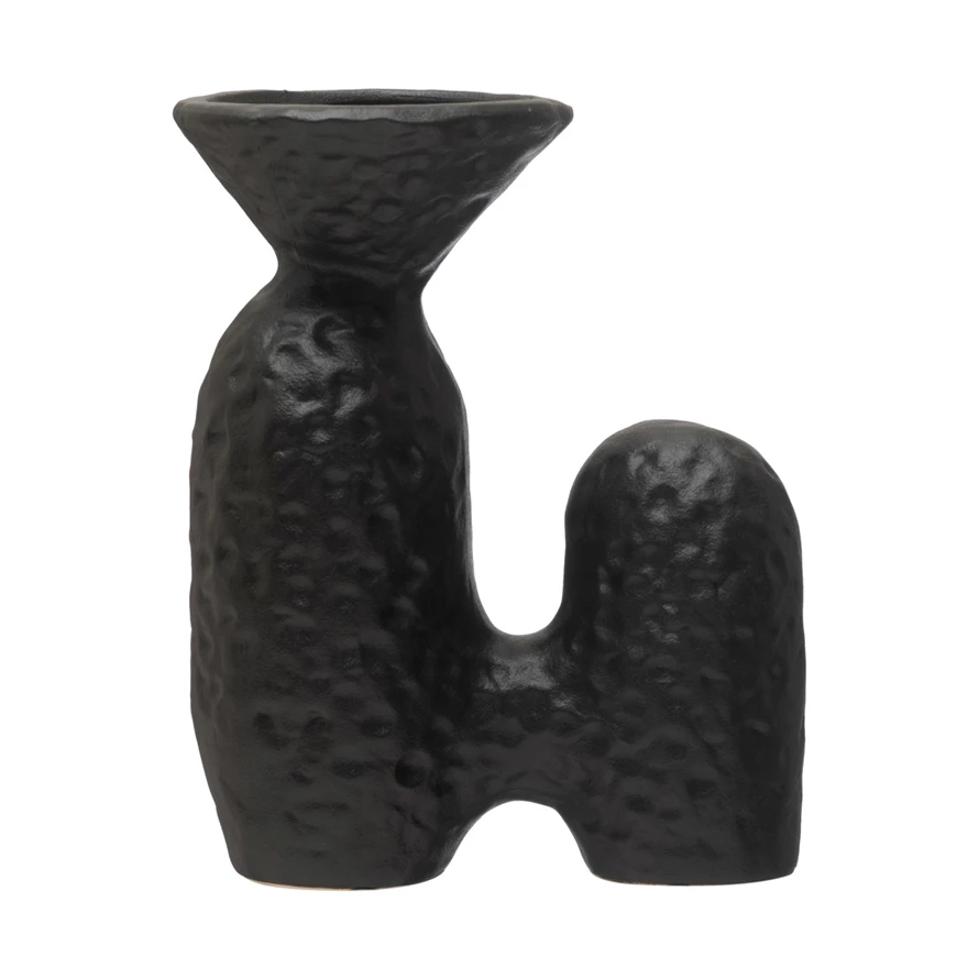 Catalog Name: 6-1/4"L x 3-3/4"W x 7-3/4"H Textured Stoneware Sculptural Vase, Matte Black