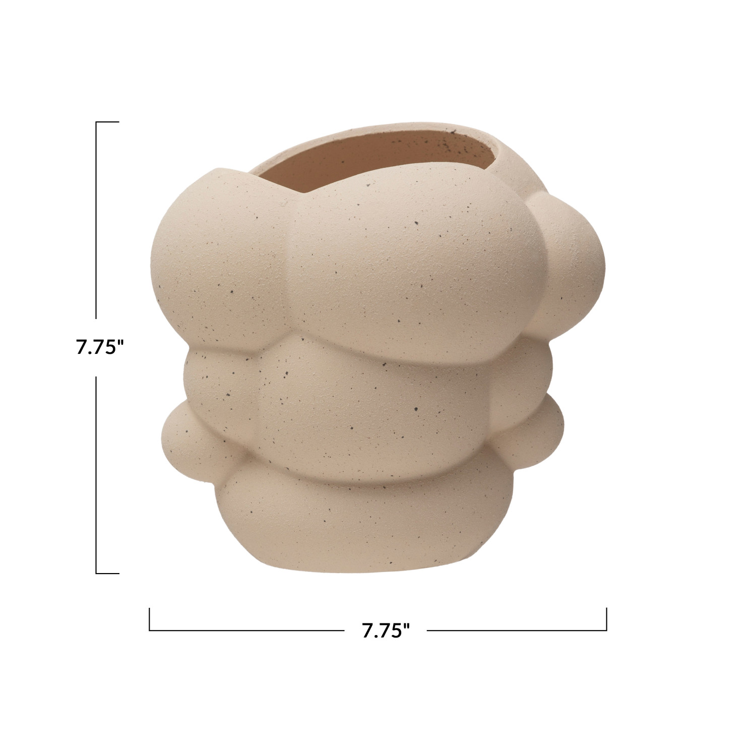 Catalog Name: 7-3/4" Round x 7-3/4"H Stoneware Formed Vase, Sand Finish, Cream Color