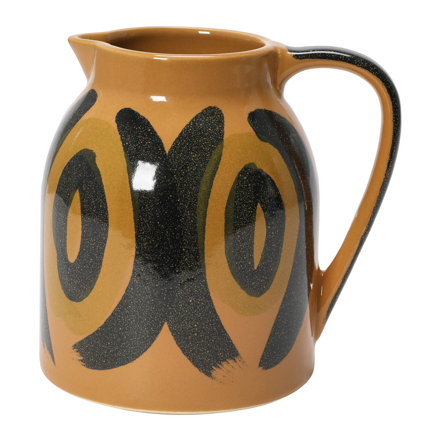 This boho inspired pitcher features intricately hand painted stoneware in a 2-tone finish.