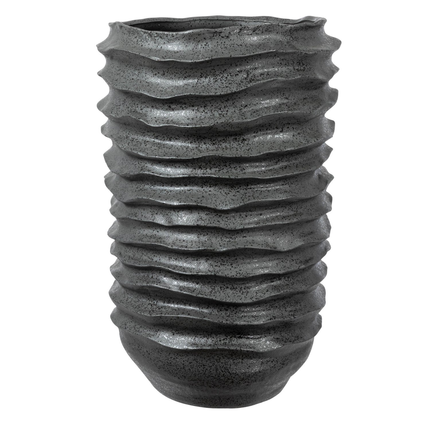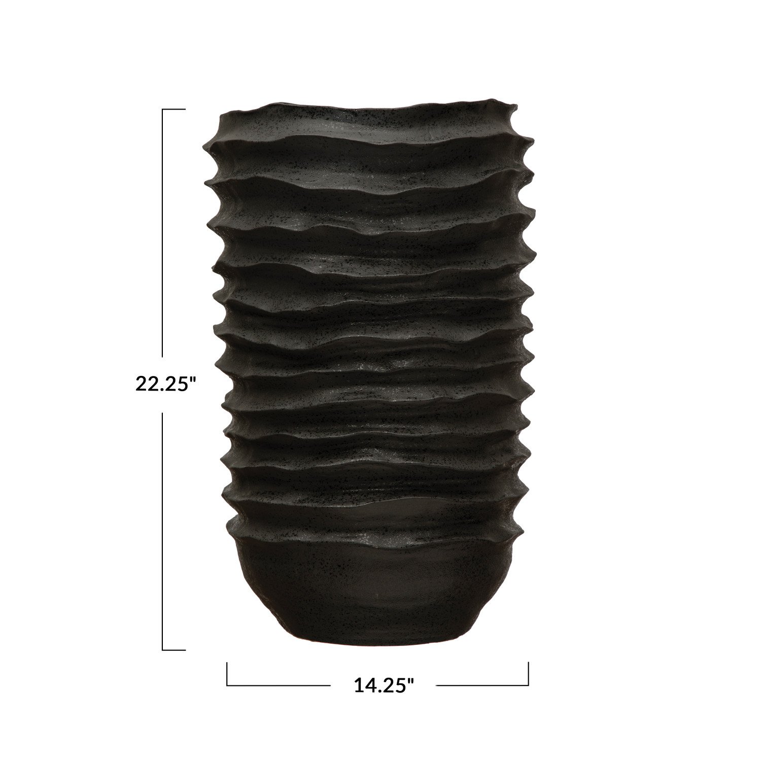Stoneware Ripple Floor Planter/Vase, Matte Black