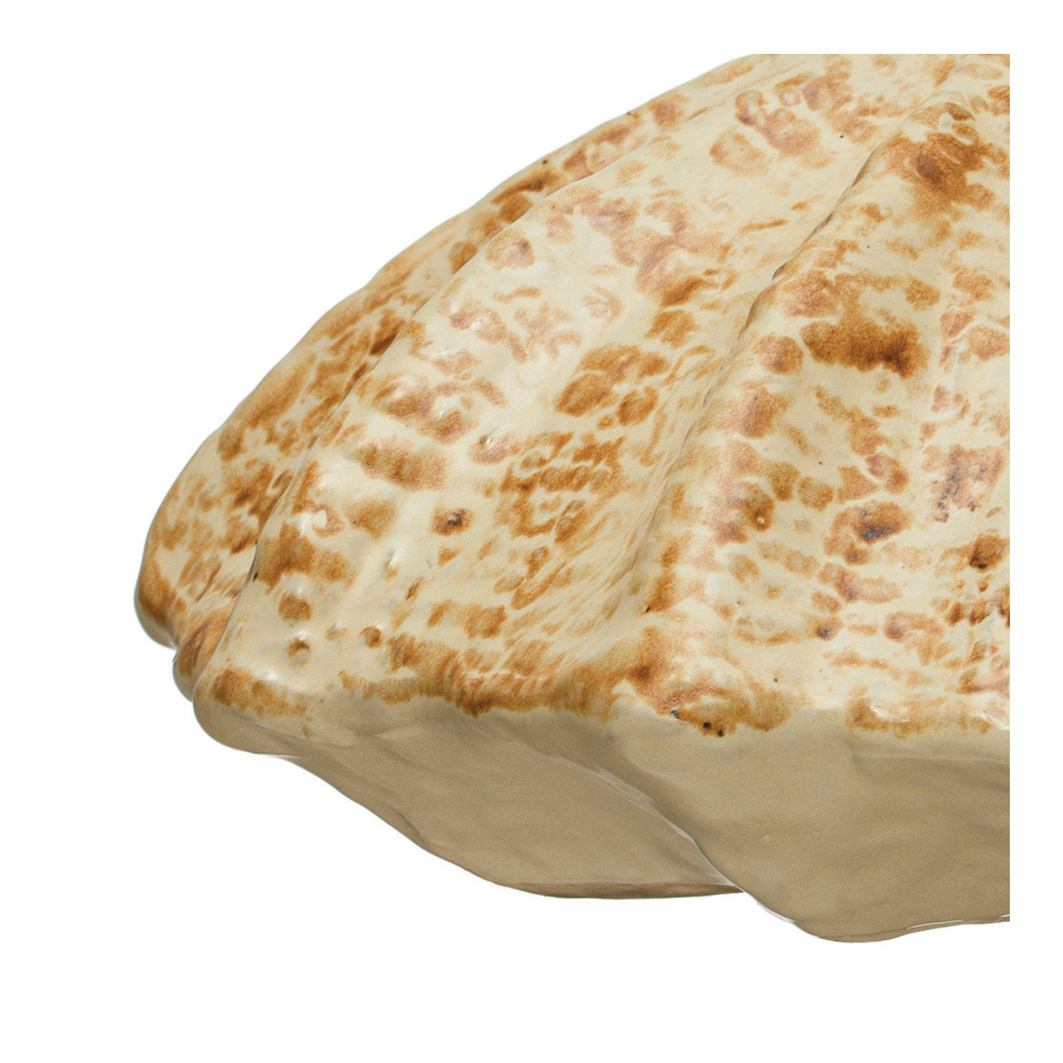 This shell-shaped stoneware vase with a reactive glaze in a warm tan hue is the perfect way to add a touch of oceanic flair to the home decor. The vase's unique shape and versatile size make it a perfect way to display a variety of flowers, plants, or other decorative items. The stoneware material is durable and long-lasting, and the reactive glaze gives the vase a unique, one-of-a-kind finish. The vase is also easy to care for, simply wipe it down with a damp cloth to keep it looking its best. The vase measures 8 inches in diameter and 4 inches tall, making it a perfect size for a coffee table, bookshelf, or mantle. This vase is the perfect way to add a touch of coastal style to any space. Whether looking for a unique centerpiece for the dining table or a stylish way to display shells, this vase is sure to impress. A stunning shell-shaped vase made of stoneware with a reactive glaze in a warm tan hue adds an oceanic vibe to the decor. This versatile vase would look great in a variety of home décor styles, from coastal to bohemian to mid-century modern. This decorative vase is versatile and can be used to hold a variety of flowers, plants, or other decorative items. Made of stoneware.