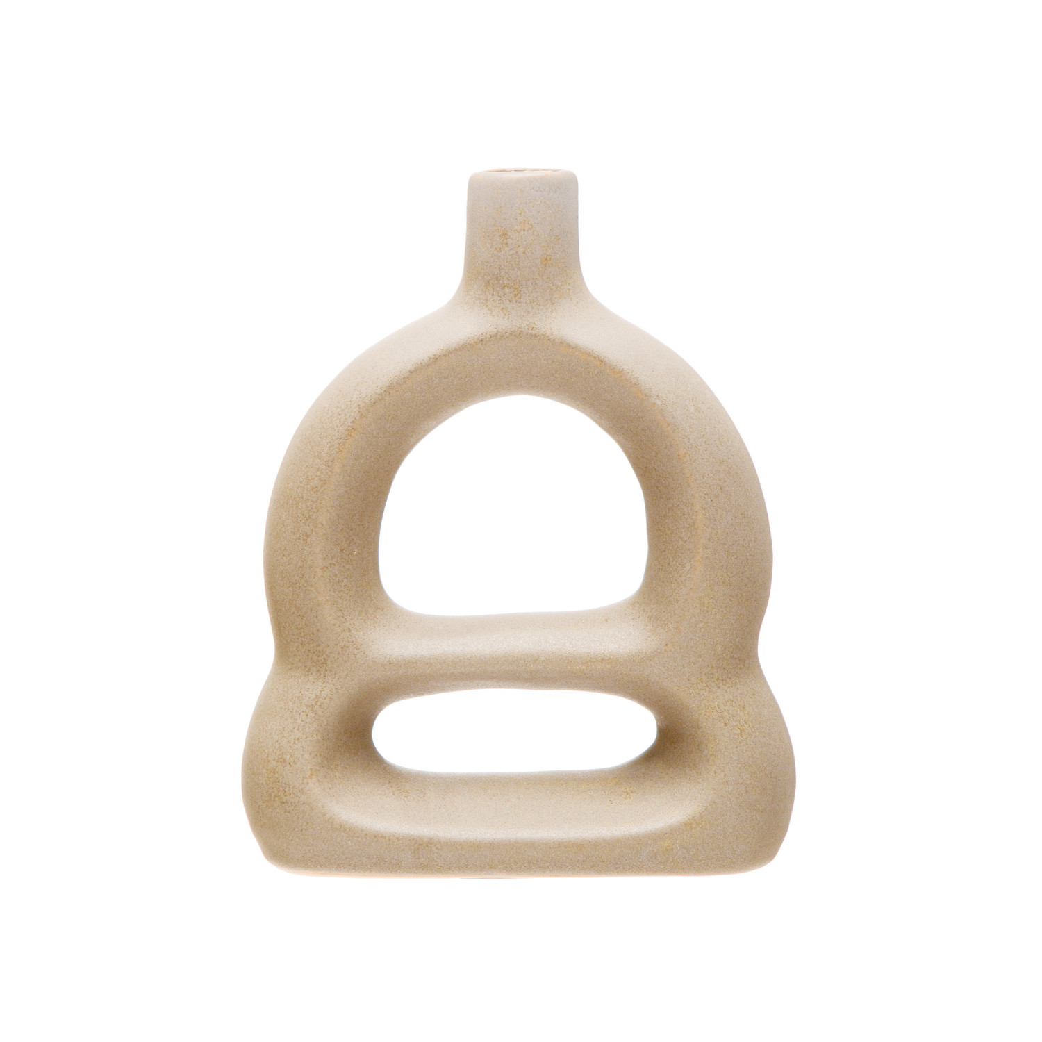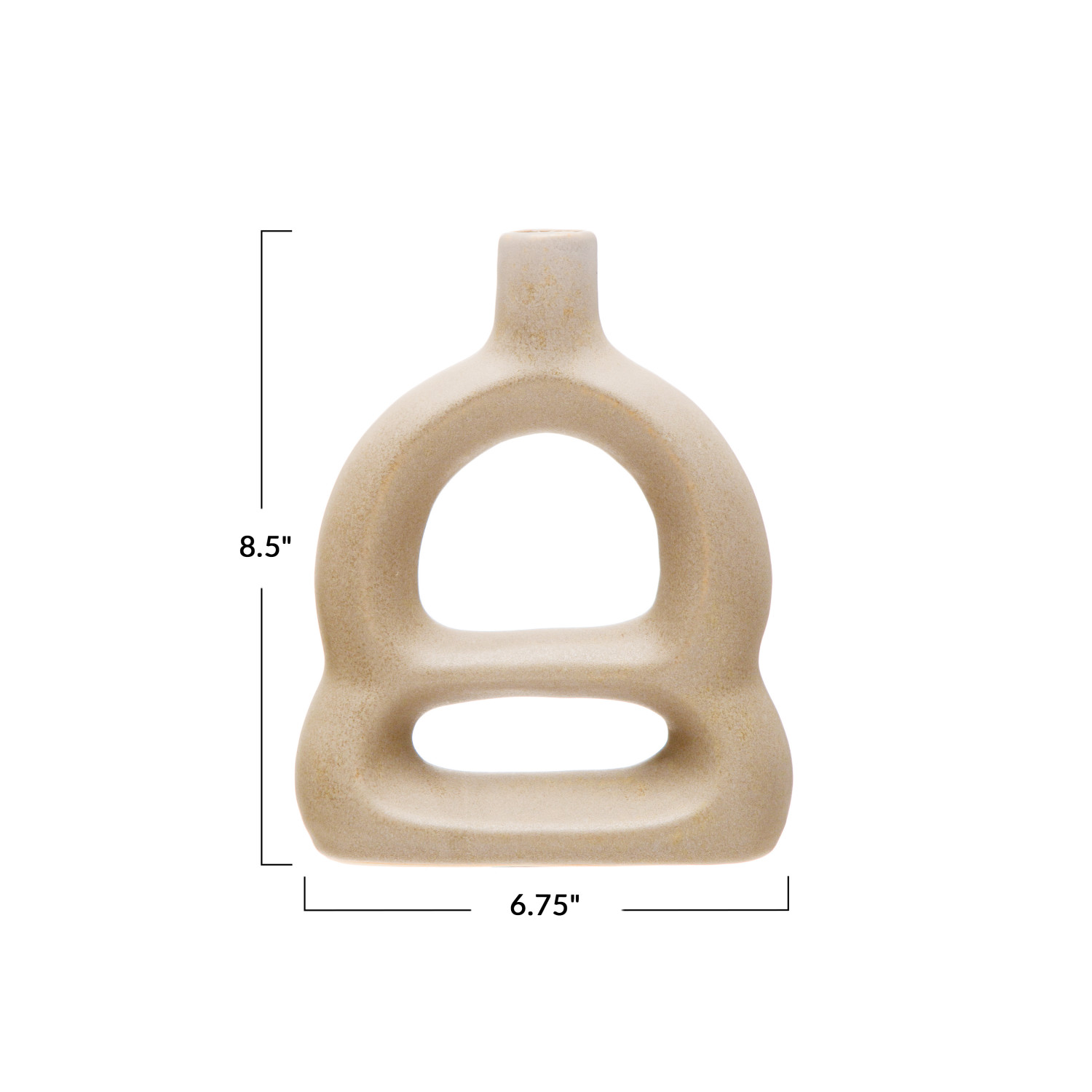 Catalog Name: 6-3/4"L x 2-1/4"W x 8-1/2"H Decorative Stoneware Sculptural Vase, Matte Beige