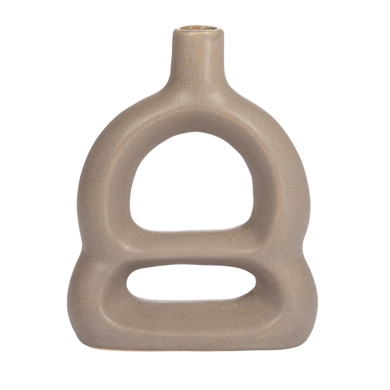 This matte beige stoneware sculptural vase is a beautiful and unique addition to any home décor. The decorative B shape is very eye-catching, and the matte finish gives the vase a modern look. It is made of high-quality stoneware, with a smooth and matte beige finish that gives it a natural and minimalist look. The vase measures 6.75 inches long, 2.25 inches wide, and 8.5 inches tall, which makes it suitable for any room or space. Use it to display flowers or plants or fill it with water, sand, pebbles, or other decorative items to create different effects. This vase will transform home decor from boring to stunning in no time. Enjoy the beauty and versatility of this matte beige stoneware sculptural vase. A stunning matte beige ceramic vase in the shape of the letter B that adds playful vibe to the space. This versatile vase would look great in a variety of home décor styles, from minimalist to modern. Whether filled with dried plants or branches that reflect the season, or keep it empty as a lovely accent, it will look stunning. Made of stoneware.