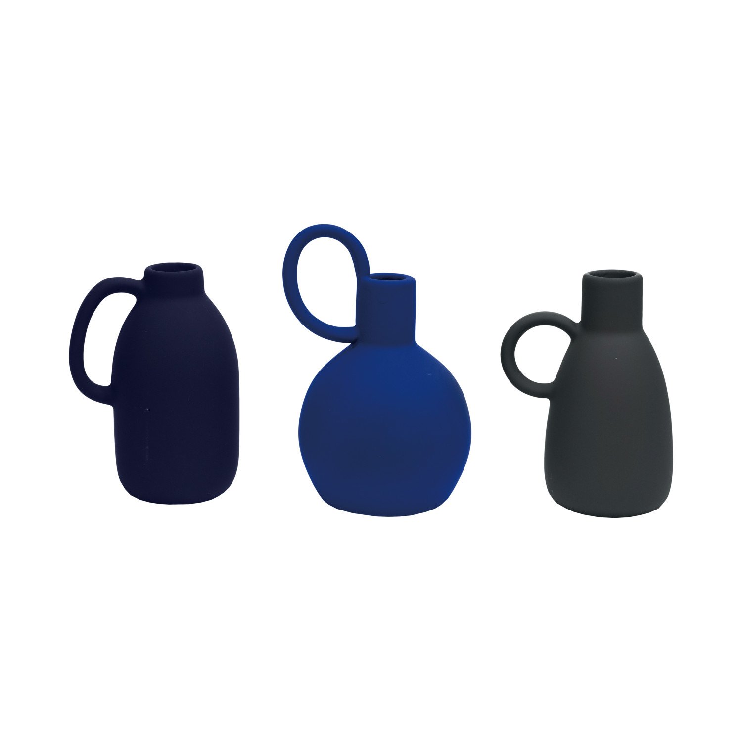 Catalog Name: 4-3/4"H - 6"H Decorative Stoneware Vase w/ Handle, Latex Glaze, Blue, Navy & Charcoal Color, 3 Styles
