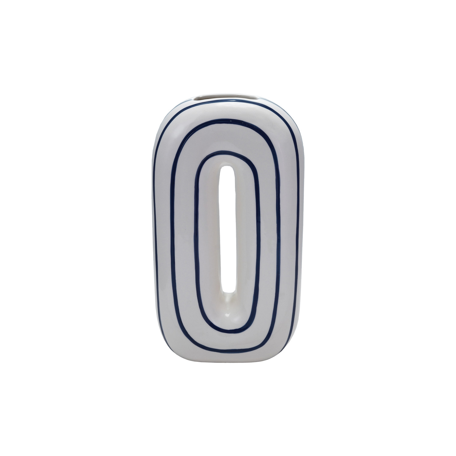 Ceramic O-Shaped Striped Vase, White & Navy Color