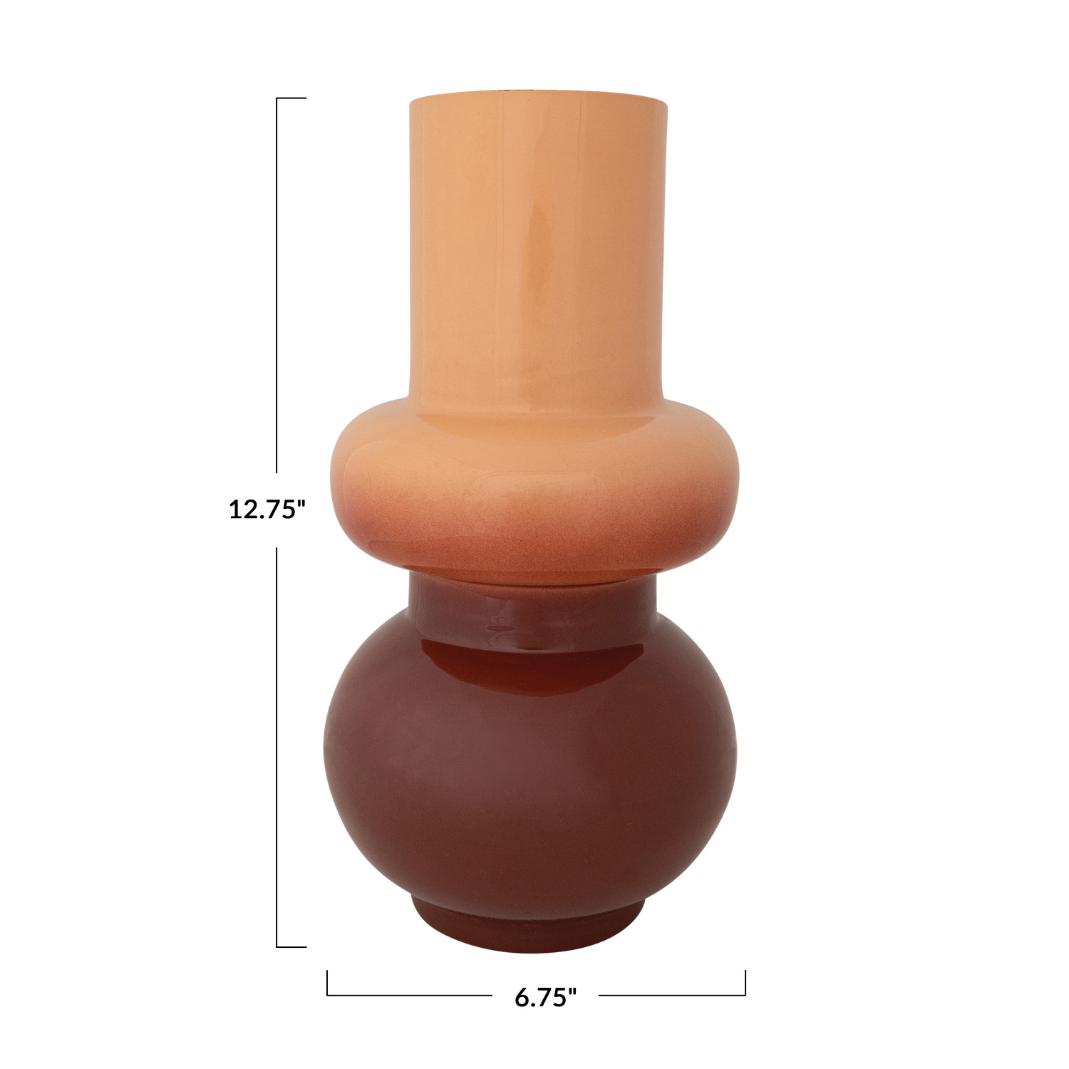 Catalog Name: 6-3/4" Round x 12-3/4"H Enameled Metal Indoor/Outdoor Vase, Rust & Nude Ombre