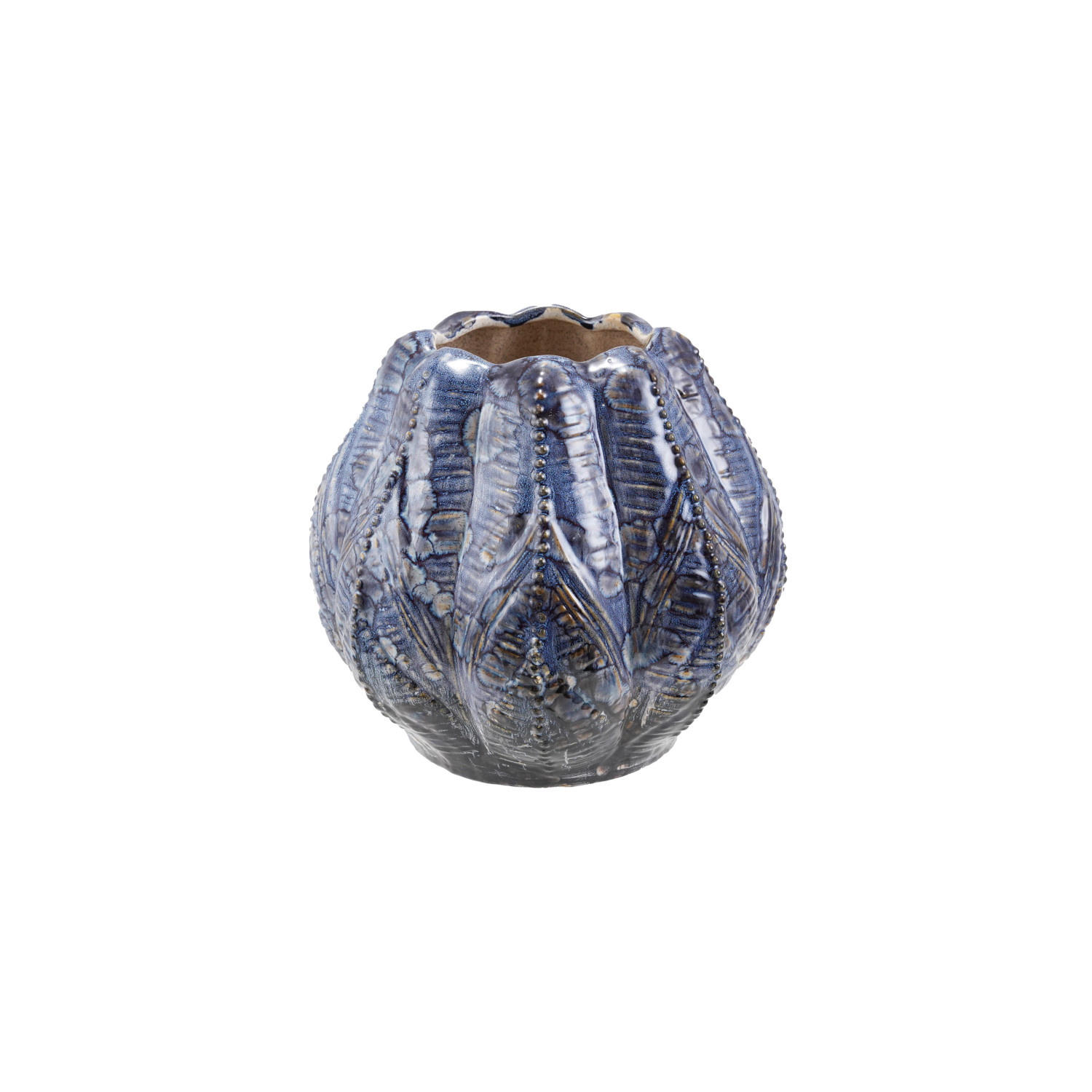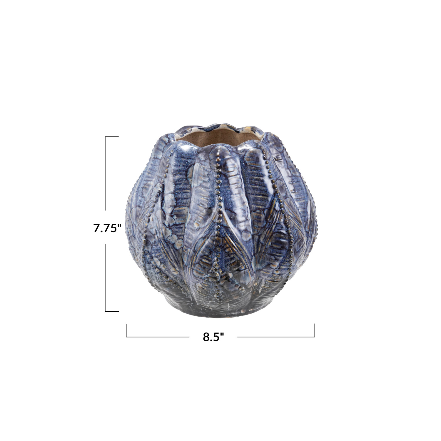 Catalog Name: 8-1/2" Round x 7-3/4"H Embossed Stoneware Planter/Vase, Reactive Glaze, Blue (Each One Will Vary)