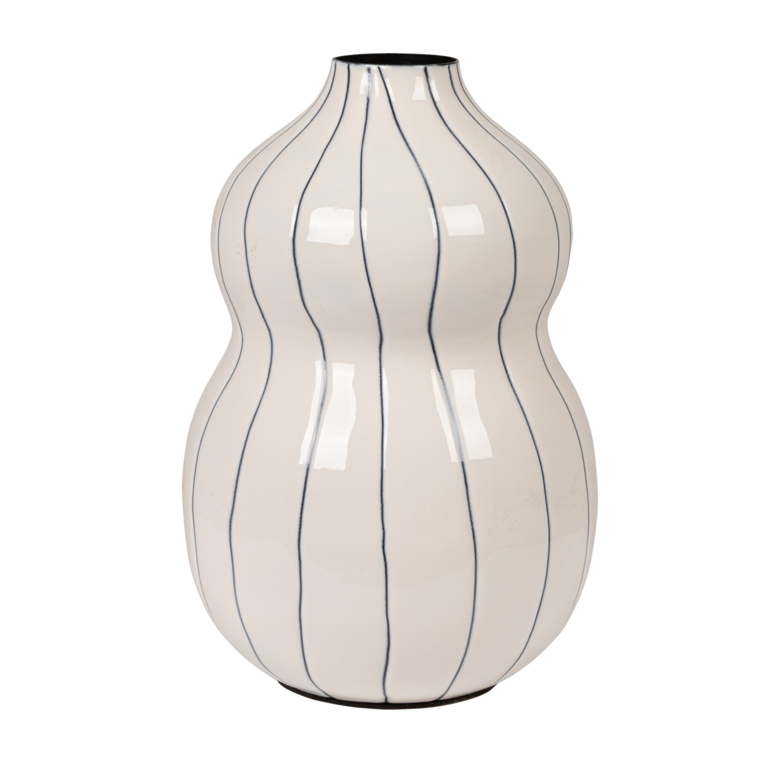 Catalog Name: 5-1/2" Round x 9"H Enameled Metal Organic Striped Vase, White & Blue