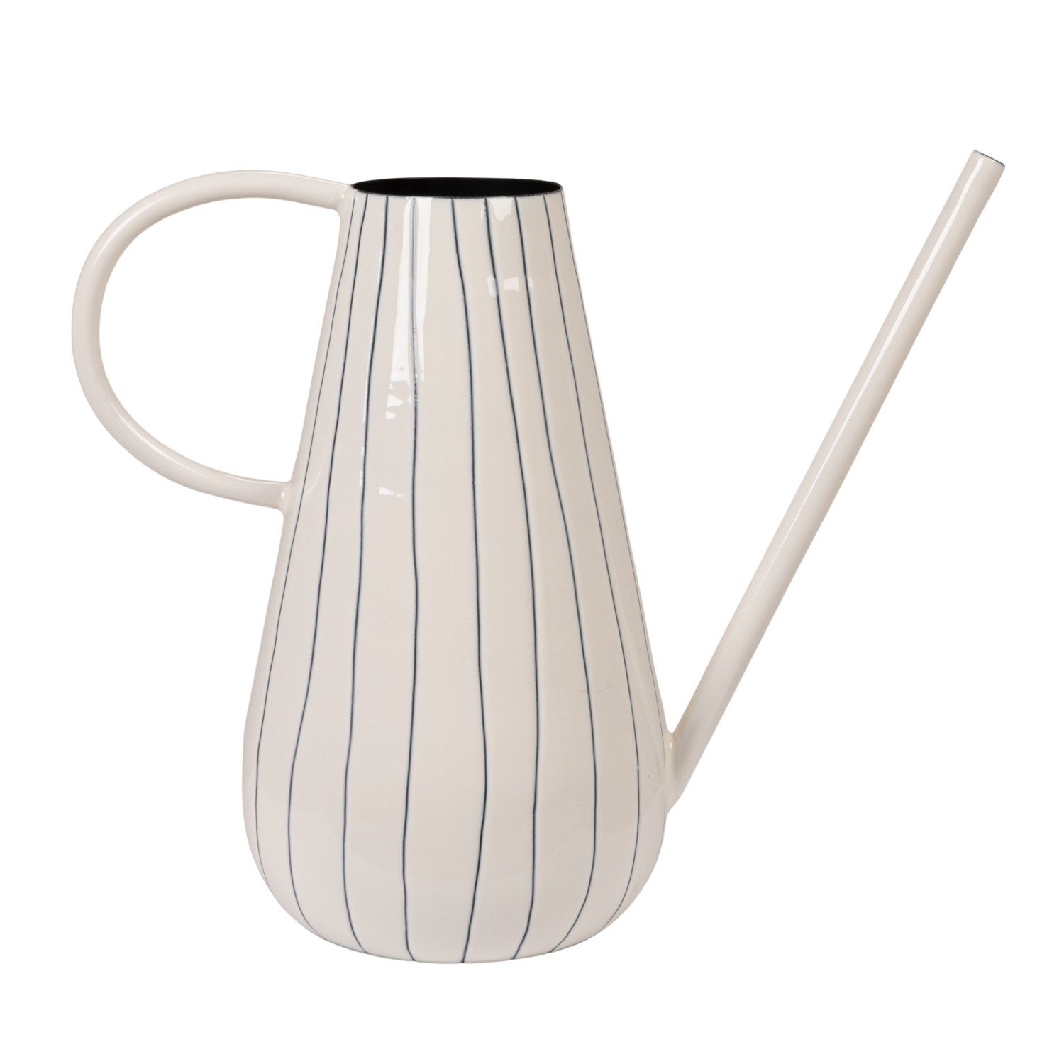 Catalog Name: 12-1/2"L x 6"W x 11"H 3 Quart Enameled Metal Organic Striped Watering Can, White & Blue