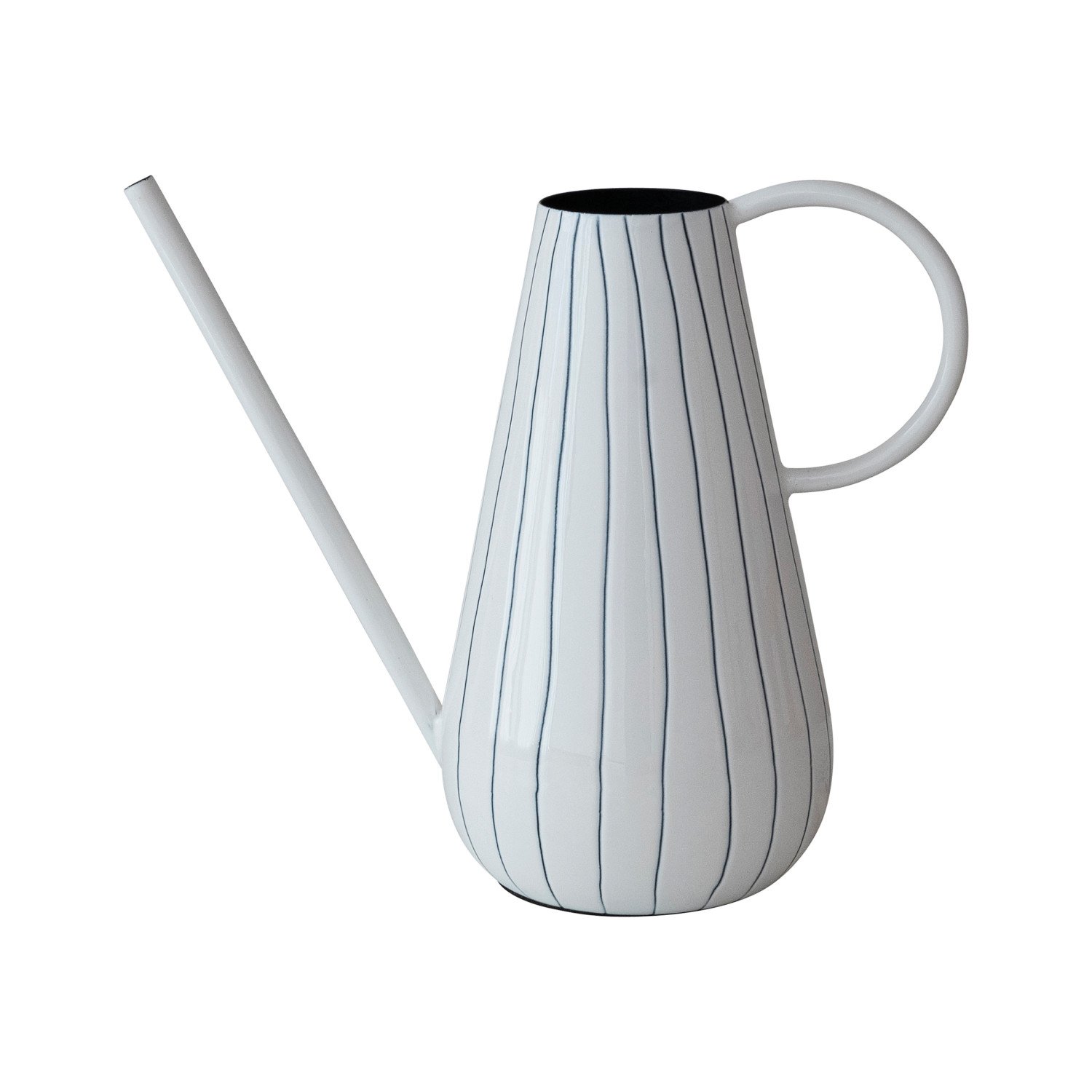 3 Quart Enameled Metal Organic Striped Watering Can, White & Blue