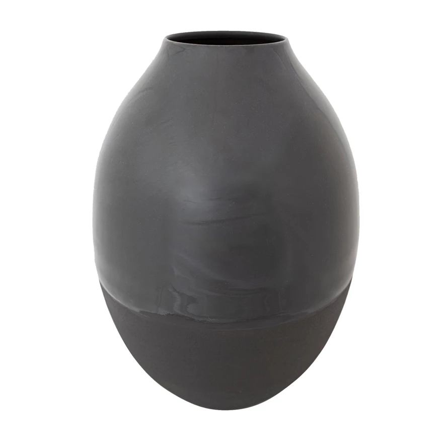 Catalog Name: 12" Round x 18"H Two-Textured Enameled Metal Vase, Smooth & Sand Finish, Charcoal Color