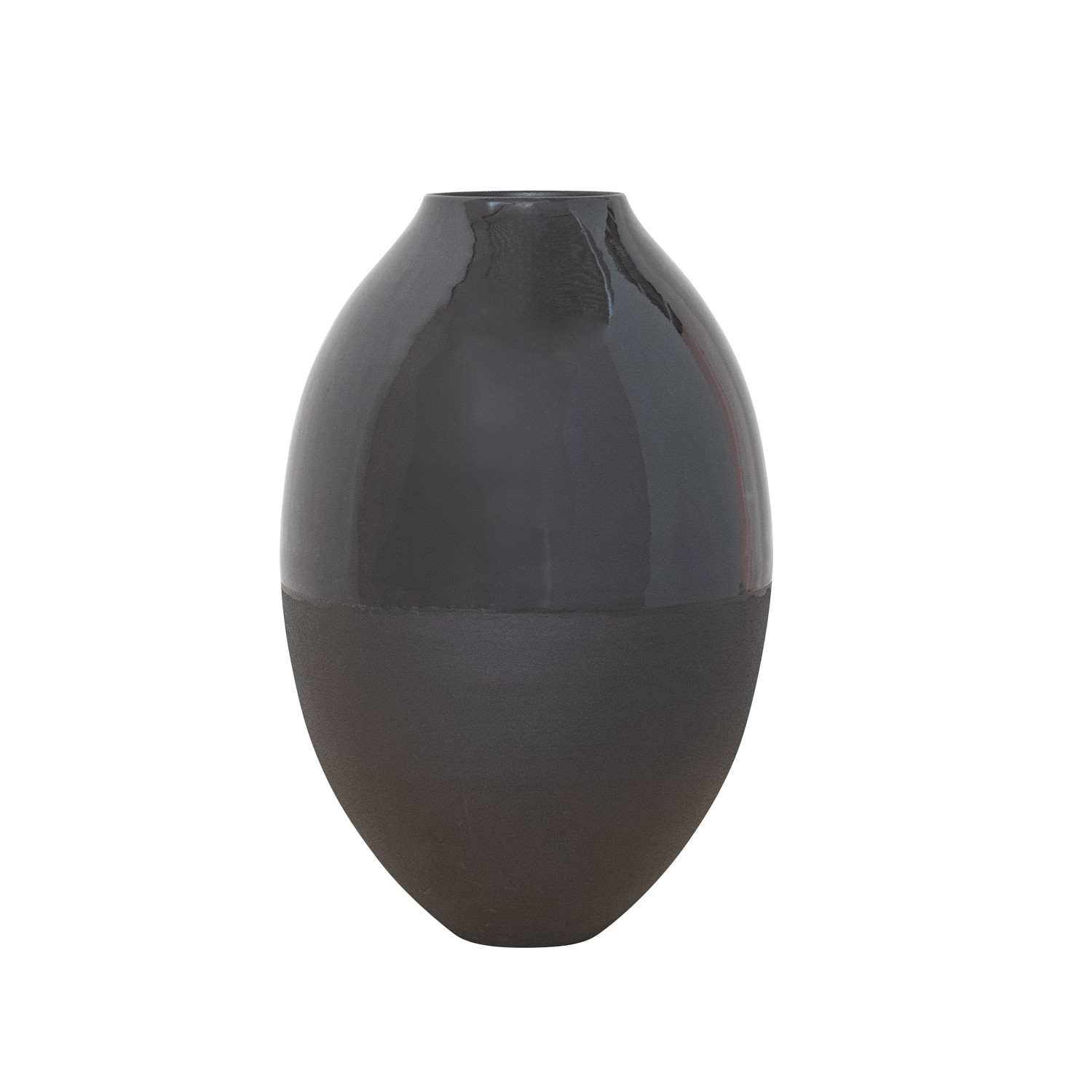Two-Textured Enameled Metal Vase, Smooth & Sand Finish, Charcoal Color