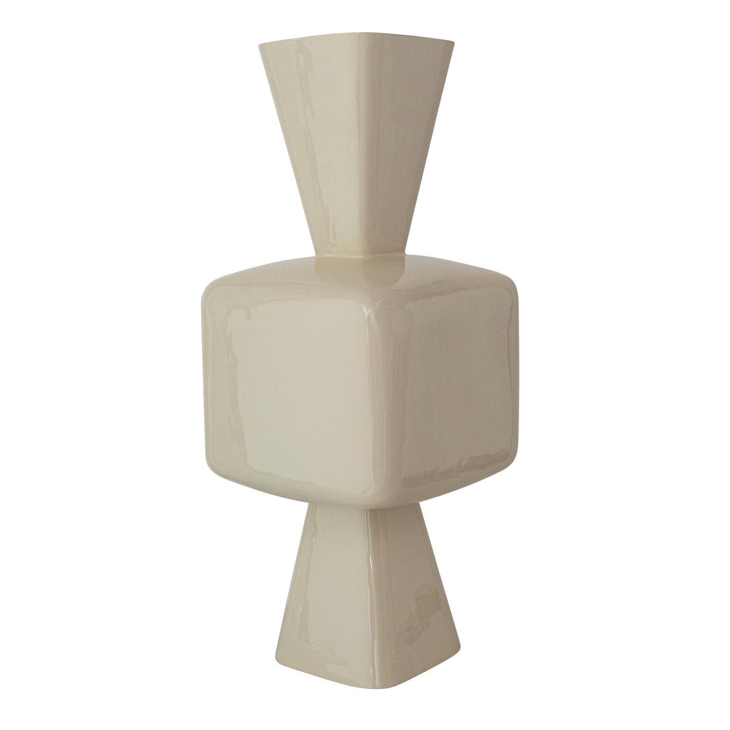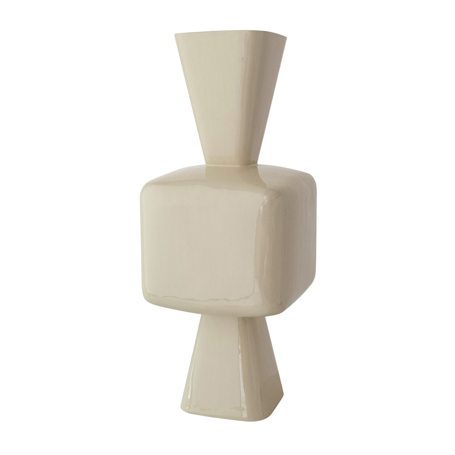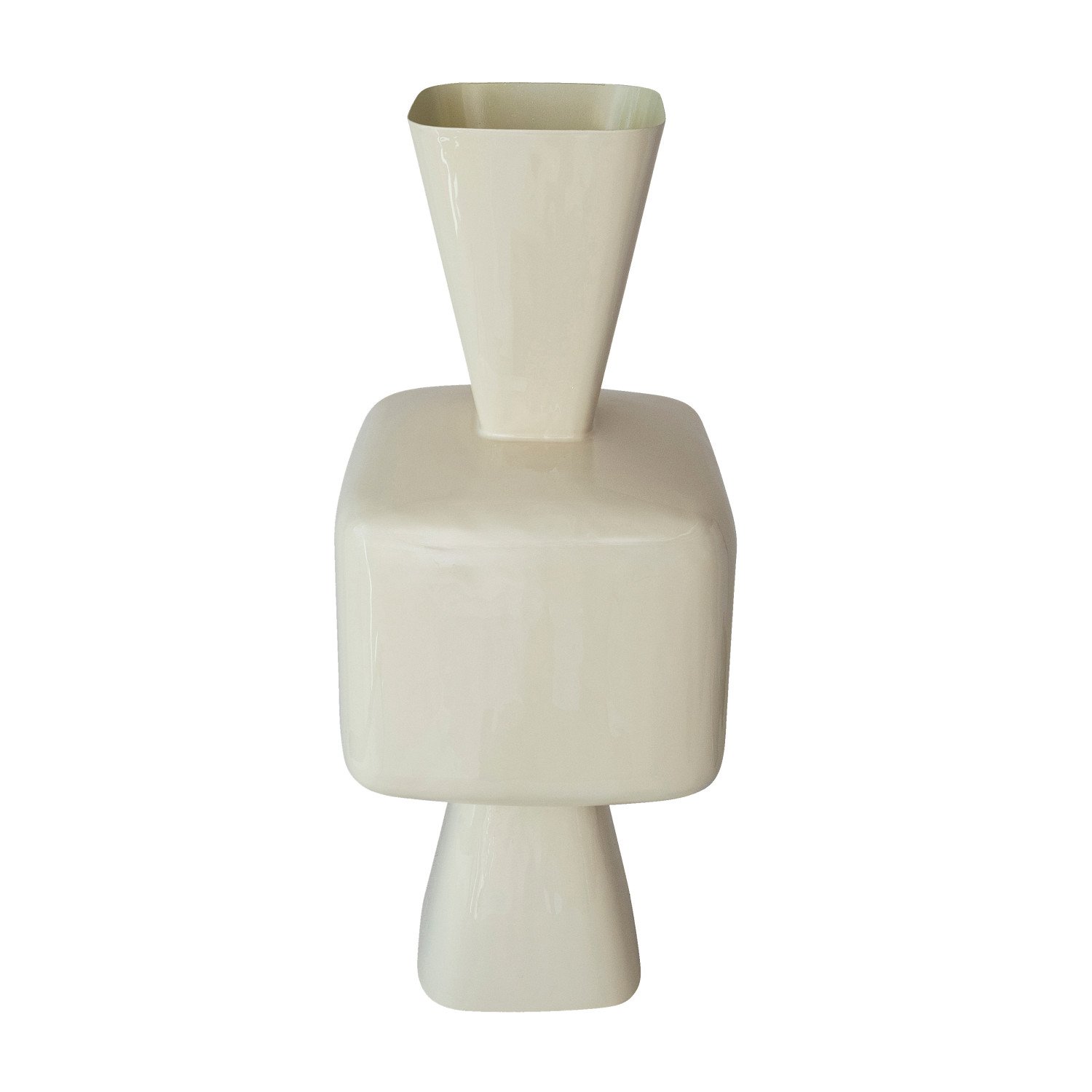 Catalog Name: 10-1/2" Square x 26"H Enameled Metal Vase, Cream Color